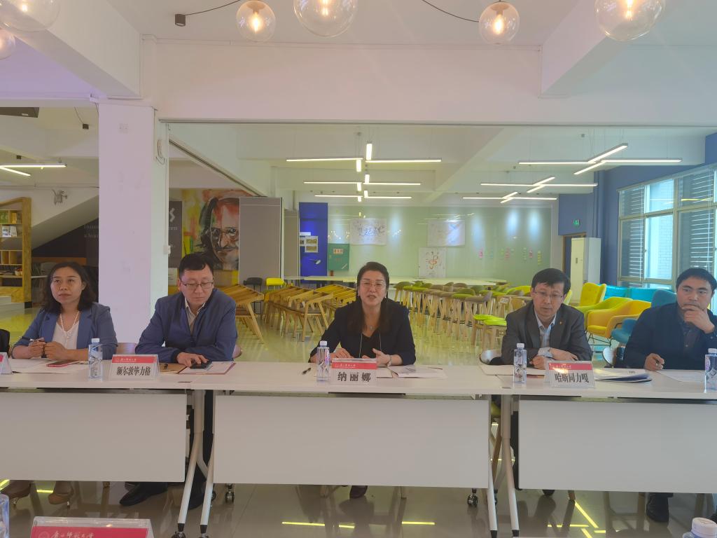 納麗娜副校長代表學校對廣西師范大學的熱情接待表示衷心的感謝,并從學校歷史沿革、辦學情況等方面介紹了我校改革發展的基本情況,重點就學校創新創業教育開展情況、成效及瓶頸進行了詳細介紹。隨后,雙方就如何更好地開展高校創新創業教育工作、如何高效率、高質量的建設課程等共同關心的話題進行深入的探討和交流。納校長表示,廣西師范大學創新創業的先進經驗為我校進一步推動創新創業教育的發展提供了寶貴的借鑒,下一步我校將在頂層設計、政策制定、機制體制的建立等方面繼續推動,細化發展思路。納校長希望,兩校能在雙創方面加強合作,在對口的專業、課程、師資、科研等方面有更深入的合作交流。