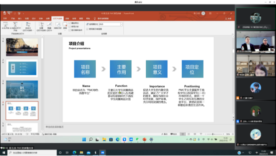 本次大賽以“我敢闖,我會創”為主題。共有18個團隊參加比賽,其中有高教主賽道創意組12個和紅色筑夢之旅賽道6個。大賽分為1分鐘VCR展示、5分鐘PPT演講和4分鐘一問一答三個主要環節。參賽選手結合精美的PPT,對企業概述、業務展望、風險要素、投資回報等內容進行了全面介紹,認真詳細地闡述了自己的創新思維和創新理念。