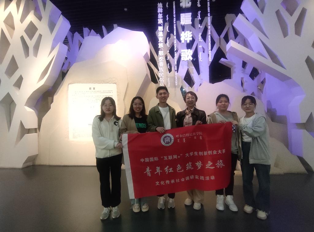 傳承紅色基因,接受思想洗禮,了解國情民情,傳承中華民族傳統(tǒng)文化,是“紅旅”始終不變的底色。為深入貫徹落實習近平總書記給第三屆中國“互聯(lián)網(wǎng)+”大學生創(chuàng)新創(chuàng)業(yè)大賽“青年紅色筑夢之旅”大學生重要回信精神,提升大學生創(chuàng)新創(chuàng)業(yè)能力,加快培養(yǎng)創(chuàng)新創(chuàng)業(yè)人才,縱深推進大眾創(chuàng)業(yè)萬眾創(chuàng)新,4月16日上午,我校大學生創(chuàng)新創(chuàng)業(yè)團隊“民藝承襲”項目團隊一行6人在創(chuàng)新創(chuàng)業(yè)學院實訓部主任多榮娜帶領下,赴內(nèi)蒙古博物院開展“青年紅色筑夢之旅”文化傳承調(diào)研社會實踐活動。