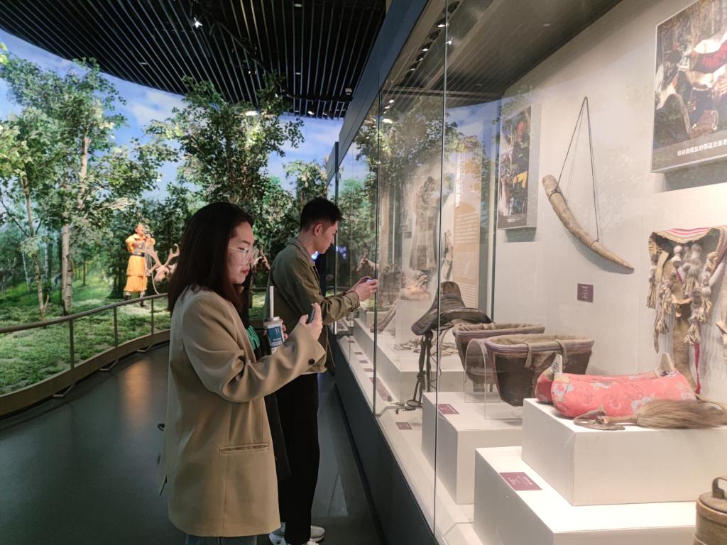 “民藝承襲”團隊深入?yún)⒂^了內(nèi)蒙古博物院“北疆樺歌”展廳,通過實景還原景搭,多維信息介紹展板,手工藝品近景展示等展塊,閱鄉(xiāng)彩部落習俗,覽民俗風情文化,見古老手工技藝,品文化發(fā)展歷史,更加深入了解學習體驗中華優(yōu)秀傳統(tǒng)文化北疆三少民族----達斡爾族、鄂溫克族、鄂倫春族民俗風情和藝術(shù)文化,感受瑰麗中華民族優(yōu)秀傳統(tǒng)文化、歷史成就和文化傳承,引導青年學生深刻領悟黨的領導、文化自信、堅定理想信念和歷史使命。