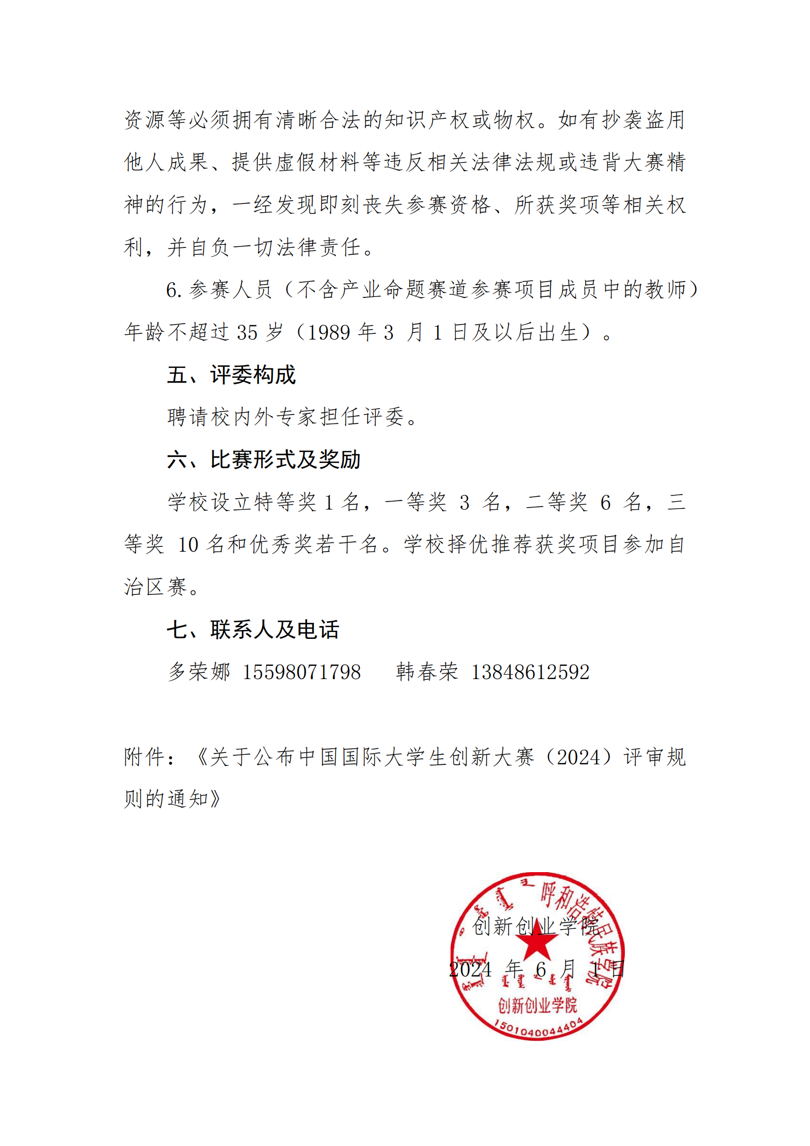 關于公布中國國際大學生創新大賽(2024)評審規則的通知.pdf
