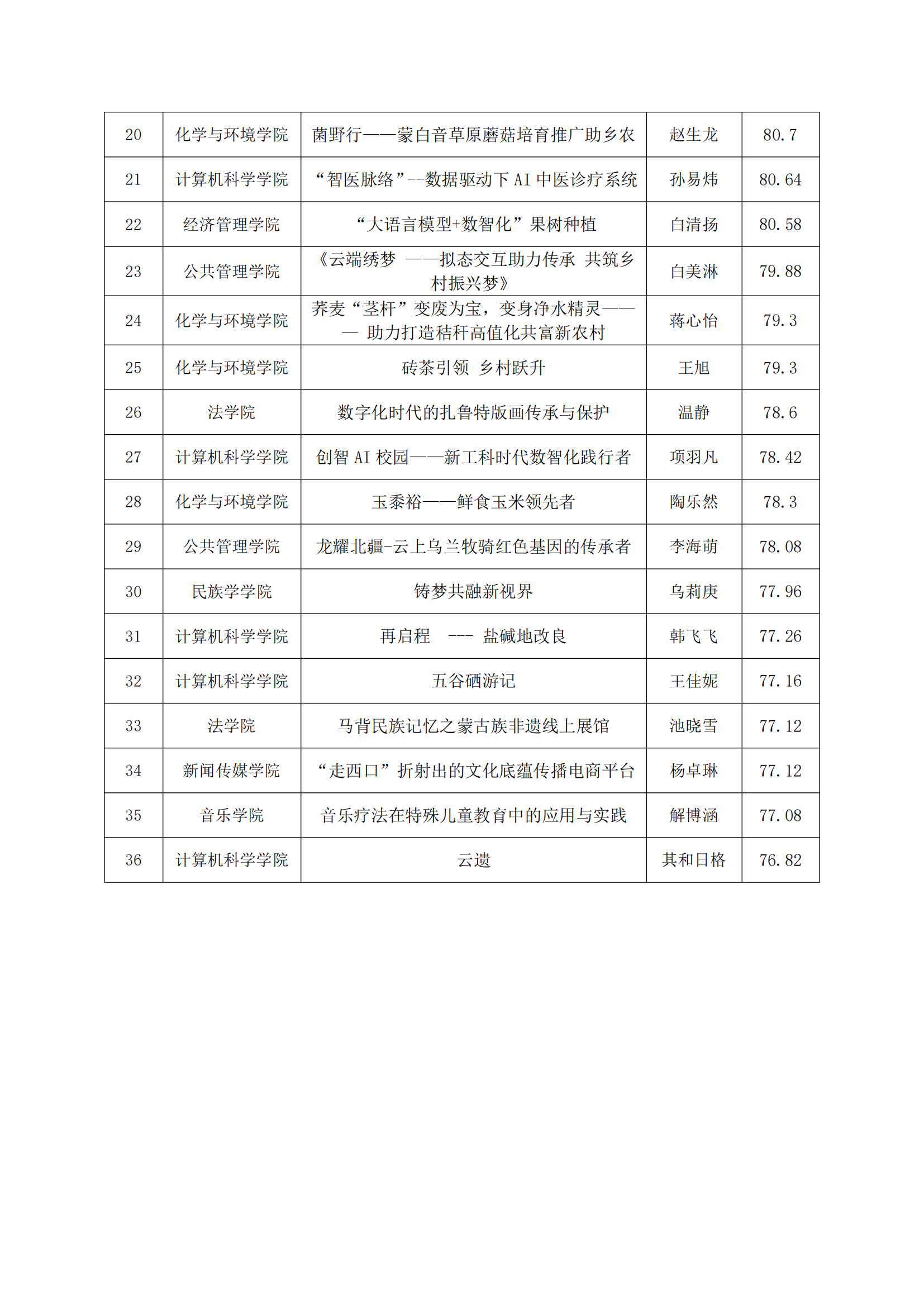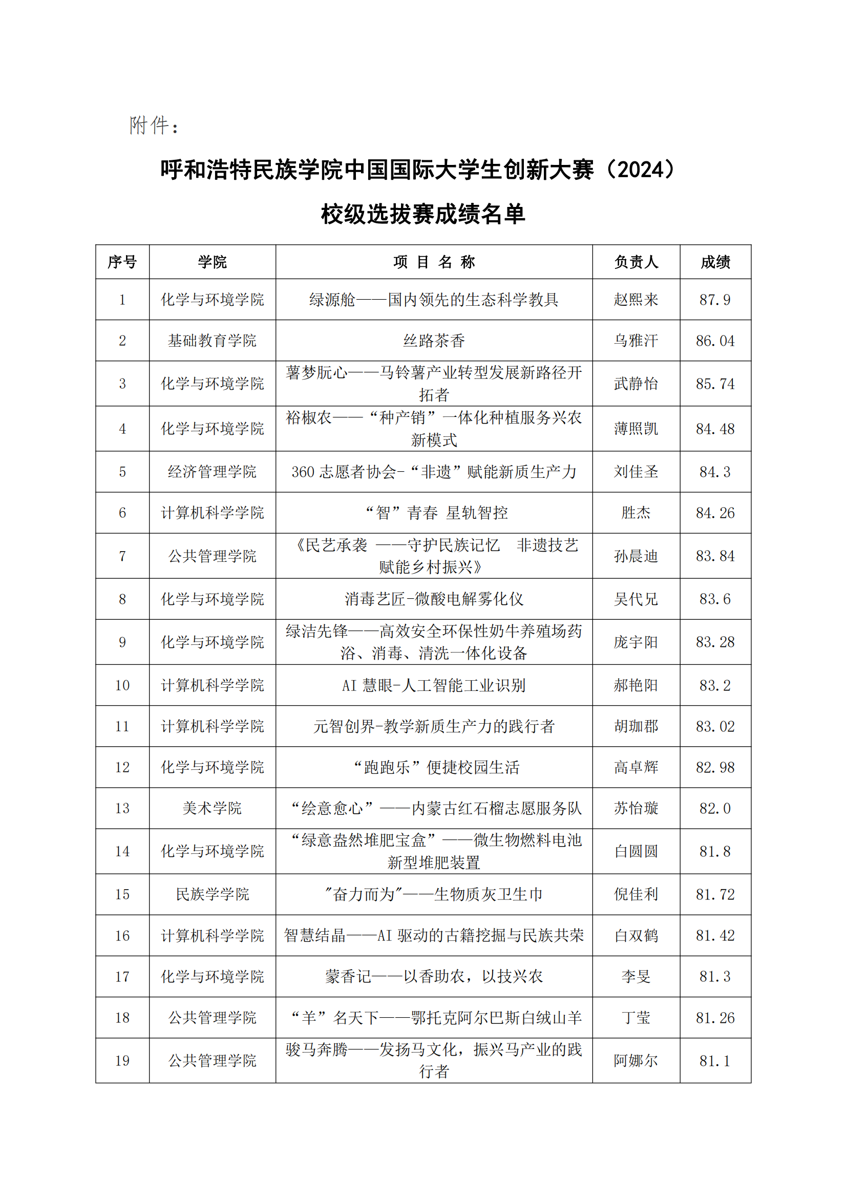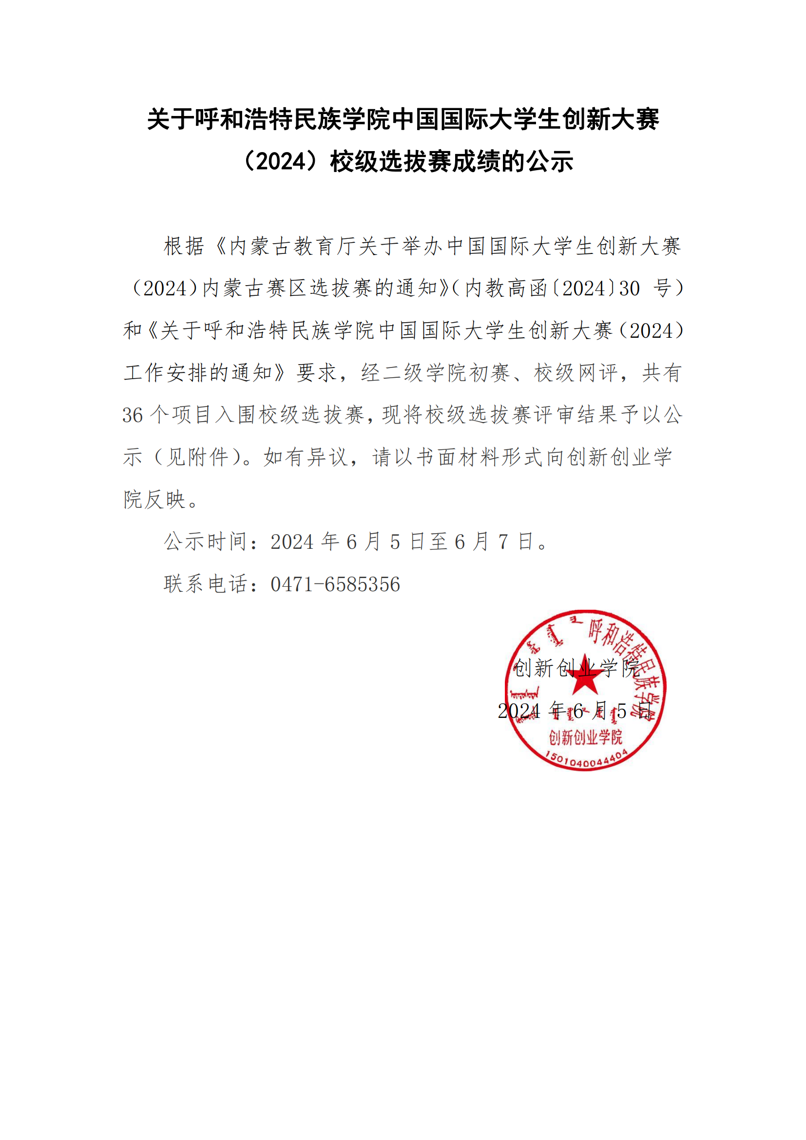關于呼和浩特民族學院中國國際大學生創新大賽(2024)校級選拔賽成績的公示