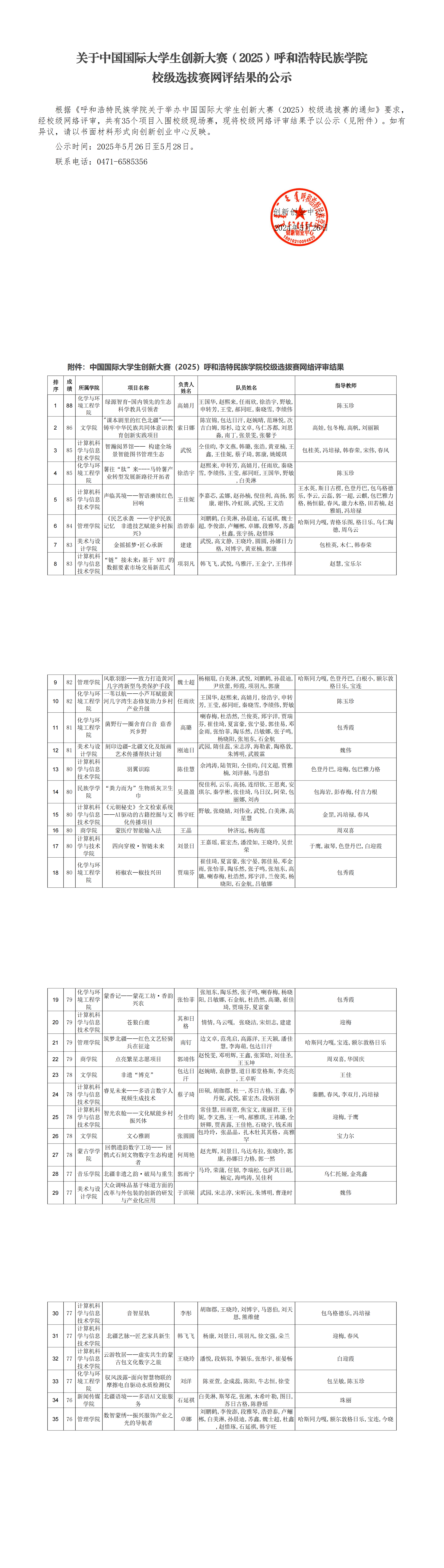 關于中國國際大學生創(chuàng)新大賽(2025)呼和浩特民族學院 校級選拔賽網(wǎng)評結(jié)果的公示