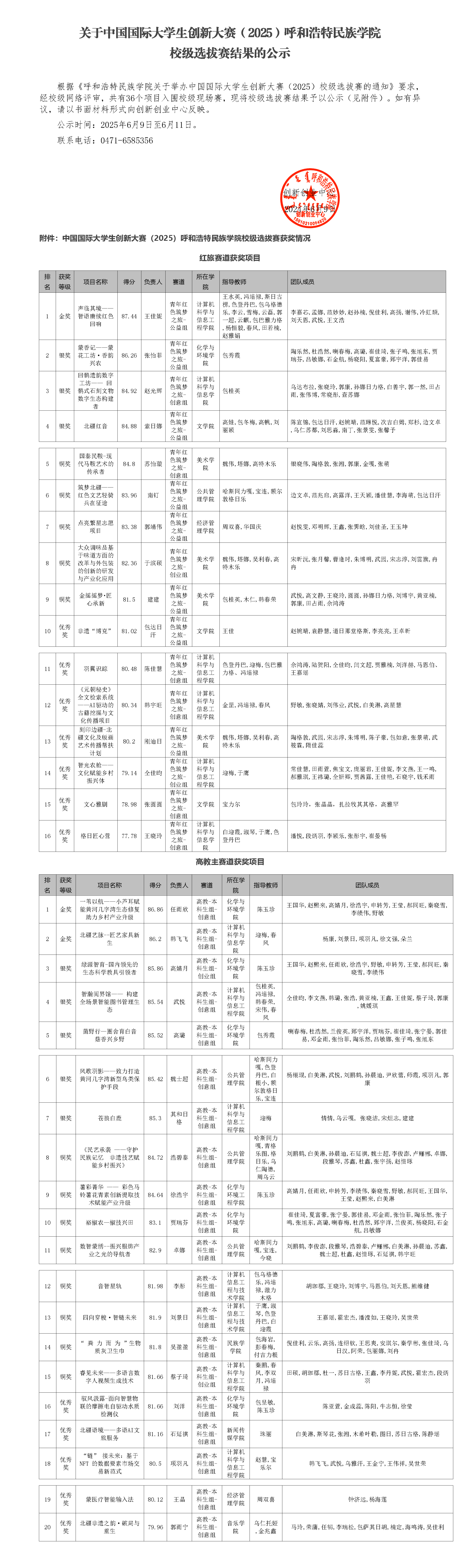關于中國國際大學生創新大賽(2025)呼和浩特民族學院校級選拔賽結果的公示