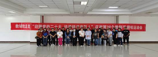 2022年9月10日是我國第38個教師節,也是黨的十八大以來第10個教師節。按照學校工會《關于舉辦“迎接黨的二十大 培根鑄魂育新人”慶祝第38個教師節活動的通知》安排部署,教輔黨總支(教輔分工會)于9月8日在學校北圖書館四樓開展了“迎接黨的二十大 培根鑄魂育新人”慶祝第38個教師節趣味運動會。