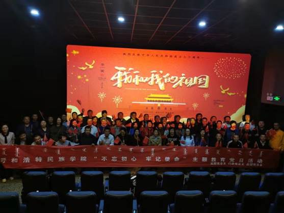 為加強提高黨員黨性修養,增強使命擔當和愛國主義教育,深入開展“不忘初心、牢記使命”主題教育,全面提升黨員隊伍的凝聚力和戰斗力,10月13日中午12點,黨群黨總支、行政黨總支、教輔黨總支聯合舉辦了組織機關黨員赴凱諾星空影院觀看“我和我的祖國”愛國主義主題教育活動。學校副校長賀希格吉雅、納麗娜出席活動。