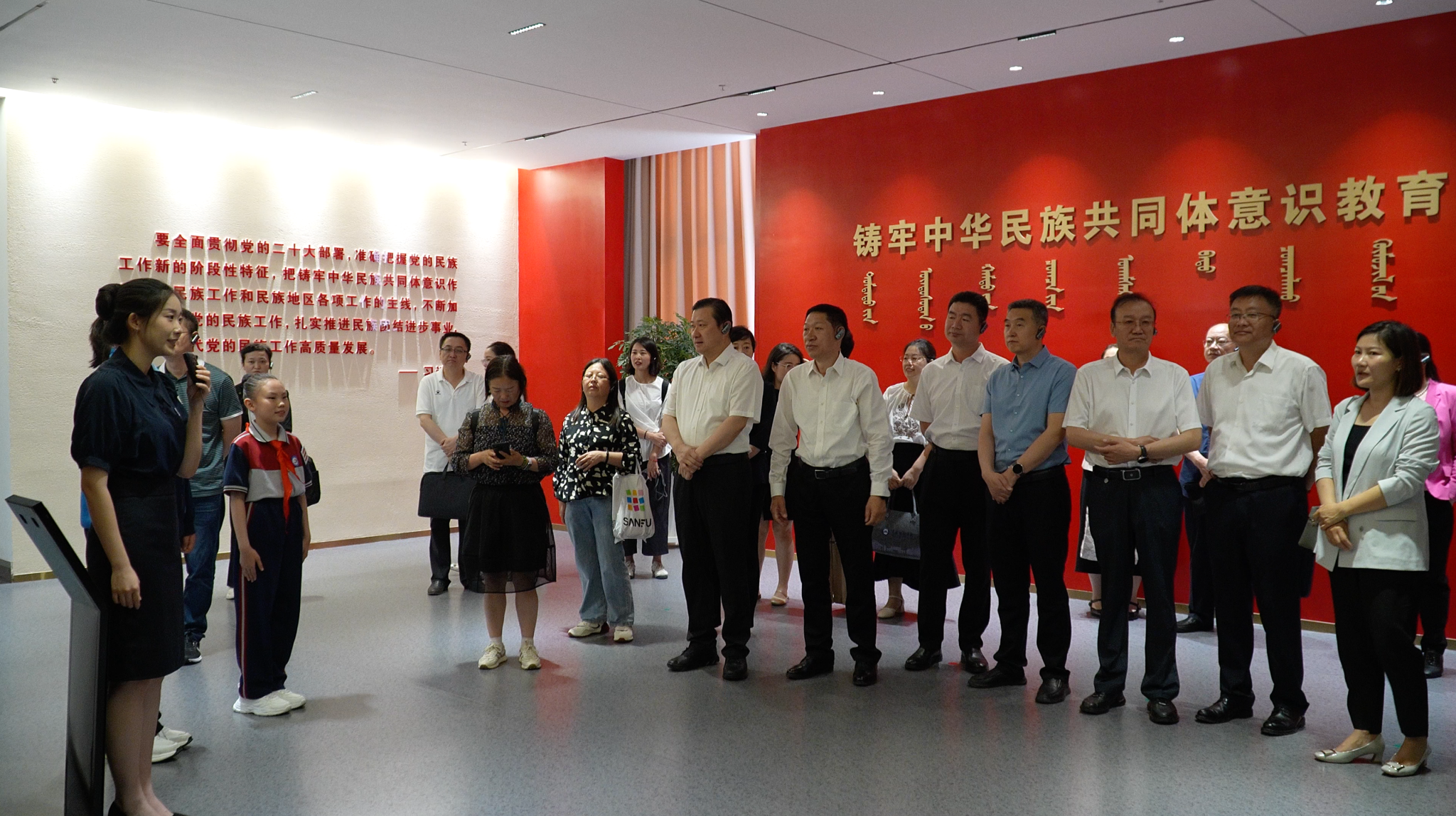 研討會期間,與會領導和專家學者共同在學校鑄牢中華民族共同體意識教育館觀摩大中小學中華民族共同體意識教育一體化教學展示。