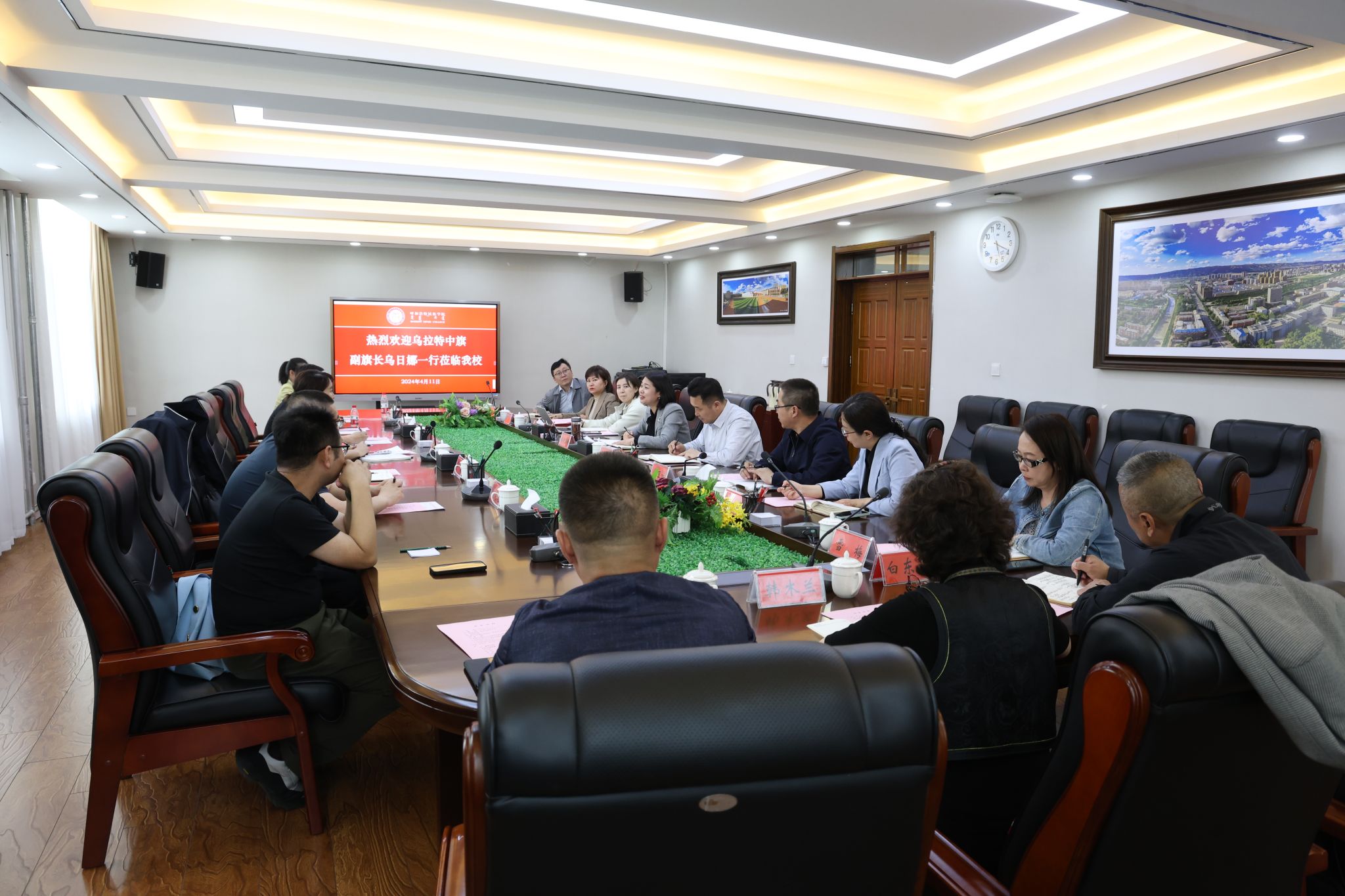 4月11日,烏拉特中旗副旗長烏日娜一行來學校深入開展走訪調研,進一步深化校地合作相關事宜。校黨委副書記格根哈斯參加調研座談,黨委委員、副校長額爾敦布和參加調研。
