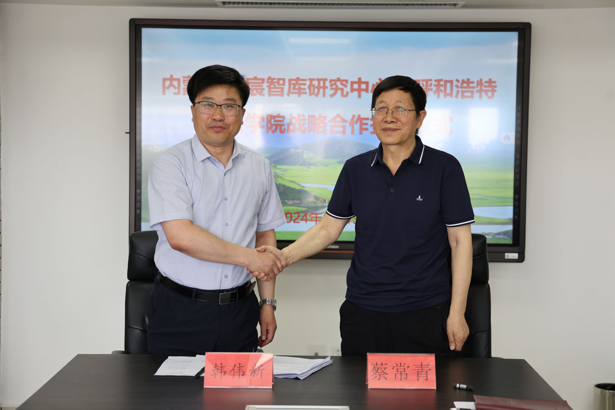 6月13日,校黨委副書記、校長韓偉新帶隊赴內蒙古北宸智庫研究中心簽署戰略合作協議,并開展座談交流。校黨委委員、副校長高喜天出席簽約儀式。內蒙古北宸智庫研究中心理事長蔡常青、北宸智庫決策咨詢專委會主任包思勤、北宸智庫民族政策專委會主任毅松、北宸智庫研究中心監事長馬益波及北宸智庫公共傳播部吳志城出席簽約儀式。