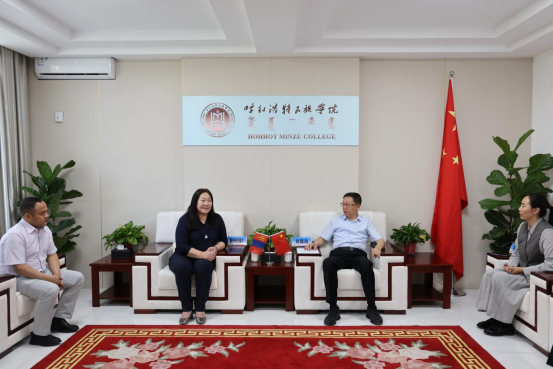 劉瑞鴻在歡迎致辭中對敖特根巴雅爾主任一行的來訪表示熱烈歡迎,并向訪問團介紹了呼和浩特民族學院的基本情況和辦學特色。我校與蒙古國立大學科布多分校于今年1月4日簽署了兩校校際合作框架協議。在合作框架下,兩校能夠在相近的學科和專業領域深化教育、科研等多方面的實質性合作,為推動實施“一帶一路”教育行動做出積極的貢獻。