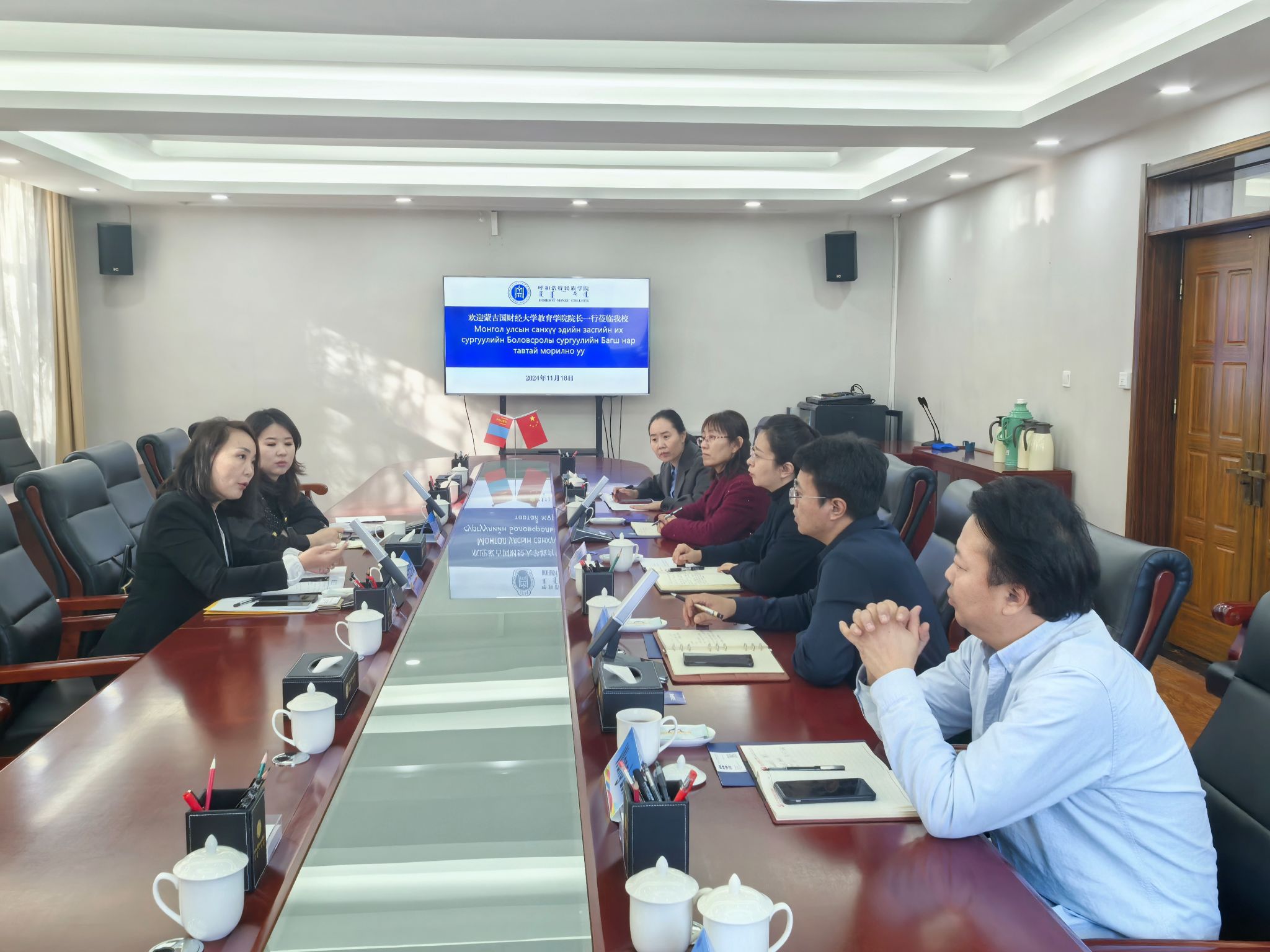 劉瑞鴻對蒙古國財經大學教育學院一行的來訪表示熱烈歡迎,向其介紹了學校的基本情況,并希望雙方在人才培養、教育教學等方面開展深度務實的交流與合作,為師生搭建高層次的對外交流平臺。