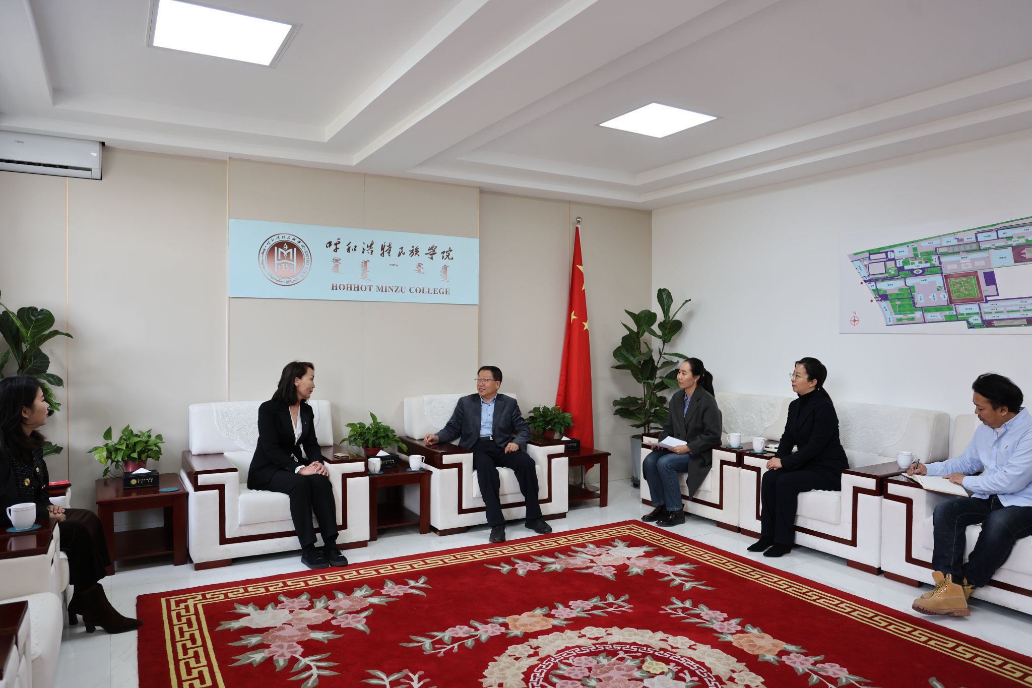 11月18日上午,蒙古國財經大學教育學院院長烏云蘇榮一行來我校進行座談交流,校黨委委員、副校長劉瑞鴻會見烏云蘇榮一行并進行座談。