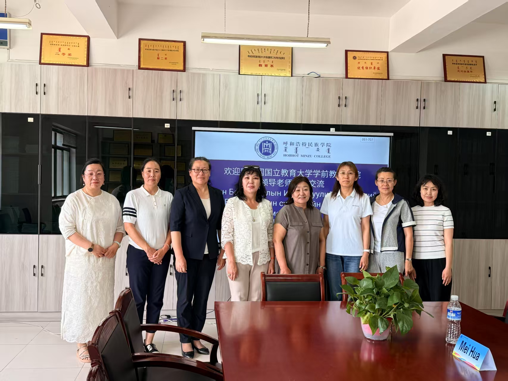 7月3日,蒙古國國立教育大學學前教育學院教務處主任圖雅博士、教師烏云格日樂博士一行蒞臨呼我校院教育學院進行訪問交流。此次訪問旨在深化兩校在學前教育領域的合作,促進師生互動與學術資源共享。學校對外合作與交流中心教師代表,教育學院領導班子成員、教研室主任、專業負責人、教師代表參加交流活動。