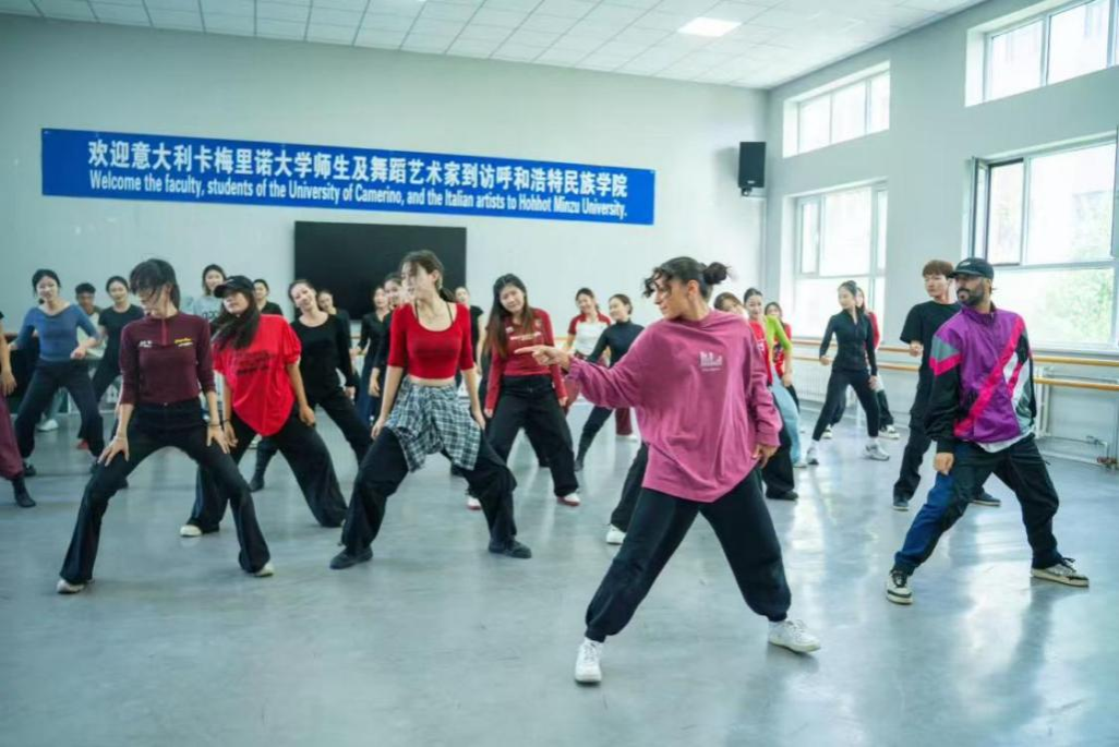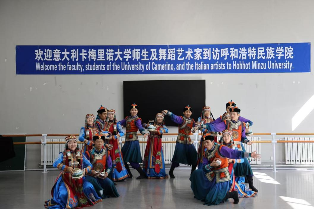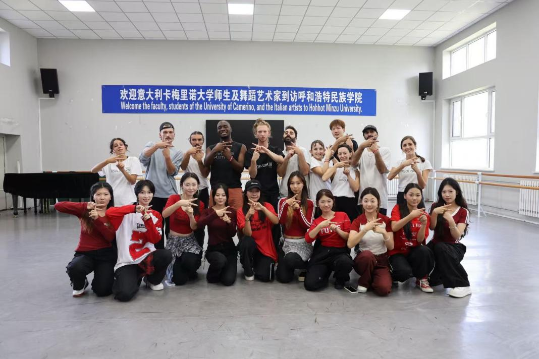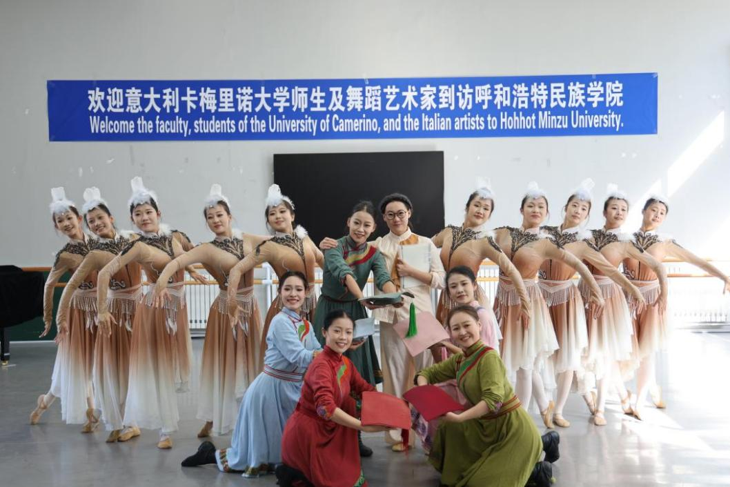 意大利舞蹈專家 “德納羅?奧羅拉”“比奧薩?瑪利亞”“蘭波內?埃麗卡”“埃格蒙特?朱莉”“塞拉?米凱萊” 等五位專家為我校師生授課。他們結合意大利舞蹈的特點,通過專業講解、動作示范和互動教學,深入解析各類舞蹈的表現力與技巧核心。交流尾聲,我校音樂與舞蹈學院教師李輝以一段韻味醇厚的蒙古舞表演致謝意方分享,將蒙古族傳統舞蹈的獨特魅力生動傳遞。此次交流課生動呈現了中意兩國舞蹈文化的獨特魅力與精髓,搭建起一座兩國師生深互學互鑒的藝術橋梁。