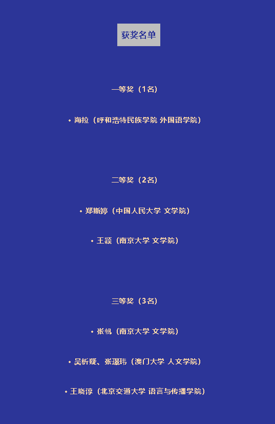 隨著第22屆國際城市語言學會年會的圓滿落幕,本屆“優秀論文獎”正式揭曉。在匿名初評與現場復評兩輪嚴格評審后,最終產生一等獎1名、二等獎2名、三等獎3名。我校外國語學院教師海拉獲一等獎。
