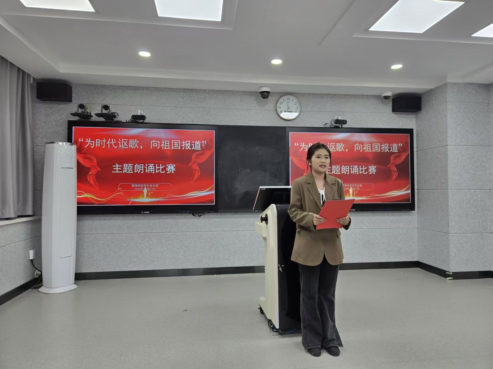 為深入學(xué)習(xí)貫徹黨的二十大和黨的二十屆三中全會(huì)精神,熱烈慶祝中華人民共和國(guó)成立75周年,弘揚(yáng)愛國(guó)主義精神,傳承中華優(yōu)秀傳統(tǒng)文化,激發(fā)學(xué)生黨員的民族自豪感和歷史使命感,10月17日,管理學(xué)院學(xué)生黨支部在尚智樓6樓智慧教室開展主題朗誦比賽。
