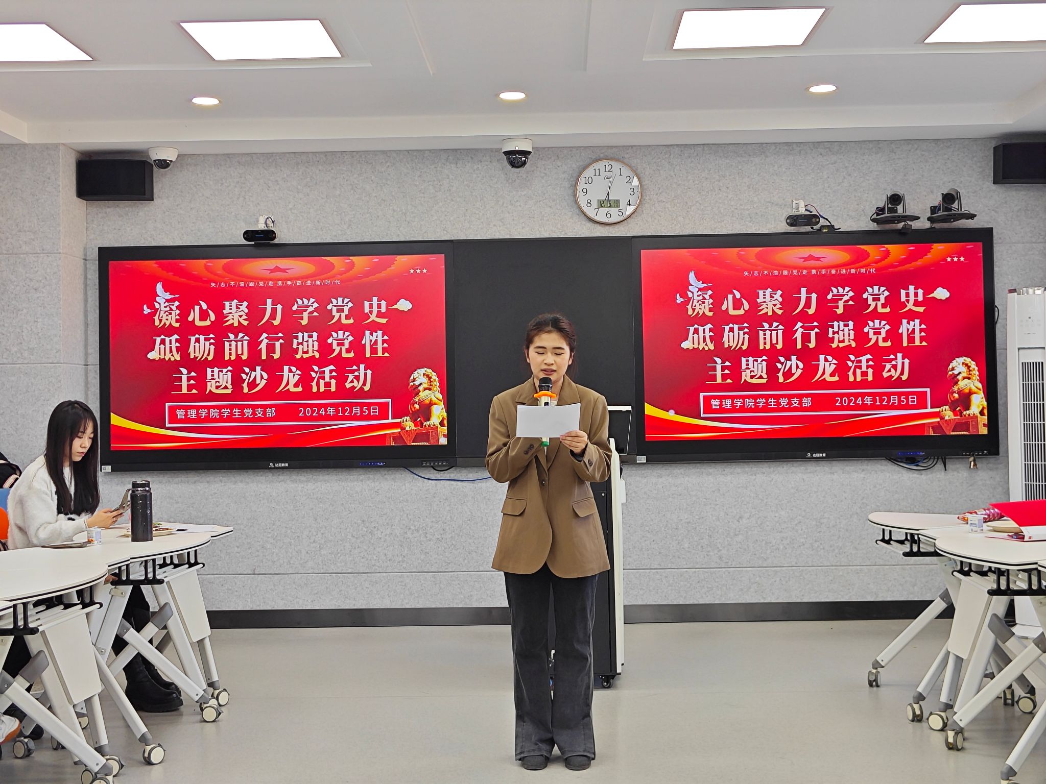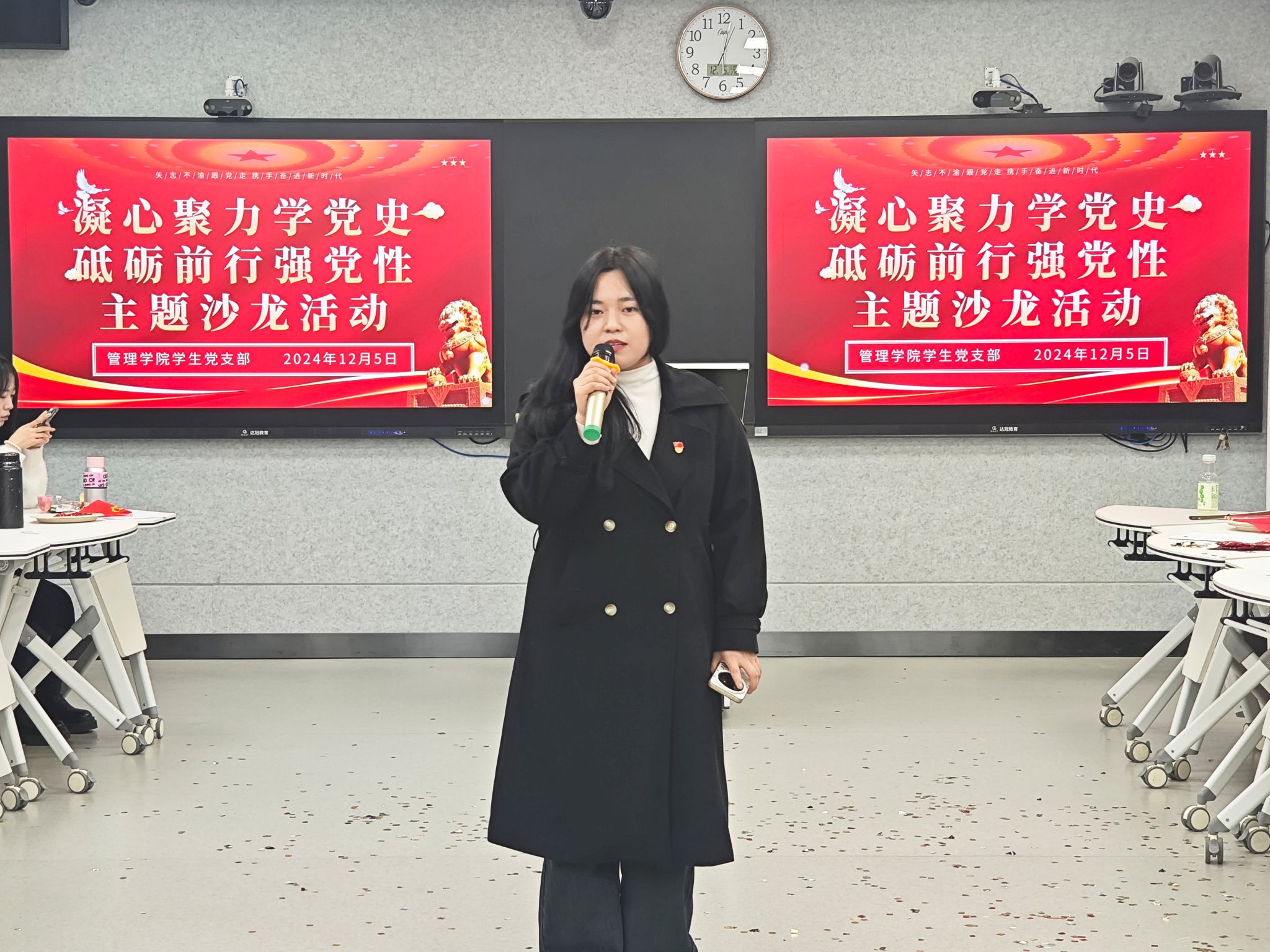 為深入學習貫徹落實習近平新時代中國特色社會主義思想,推進黨史學習教育常態化長效化,發揮支部黨建互融互促作用,管理學院學生黨支部于2024年12月5日組織開展了“凝心聚力學黨史 砥礪前行強黨性”主題黨日活動。