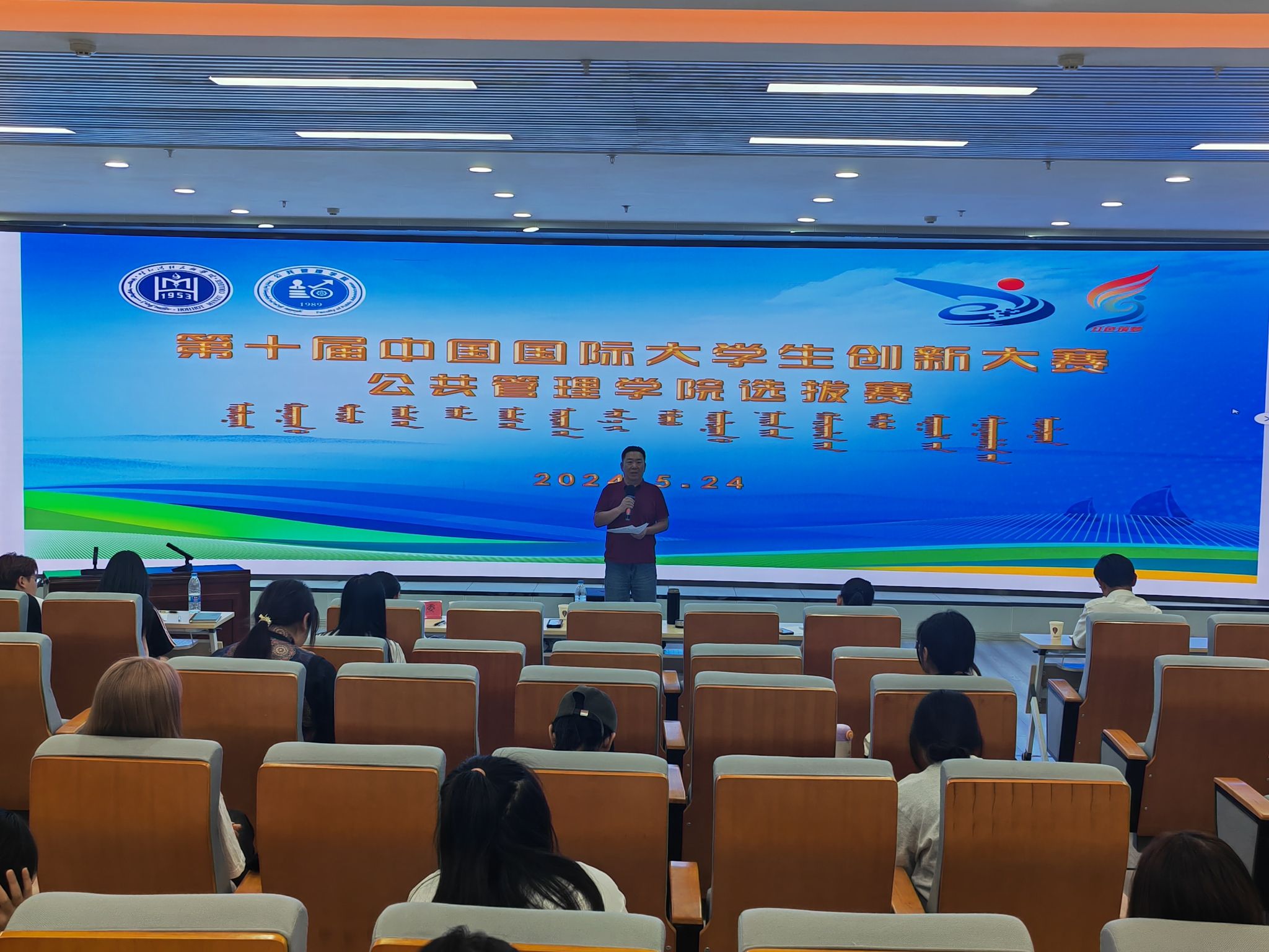 5月24日,公共管理學院在舊圖書館一樓報告廳舉辦了2024年中國國際大學生創新大賽公共管理學院選拔賽。本次大賽由公共管理學院哈斯同力嘎主持,特別邀請了計算機學院教授馮培祿、文化產業管理校企合作方代表杜娟及學院講師白根小受邀擔任評委。