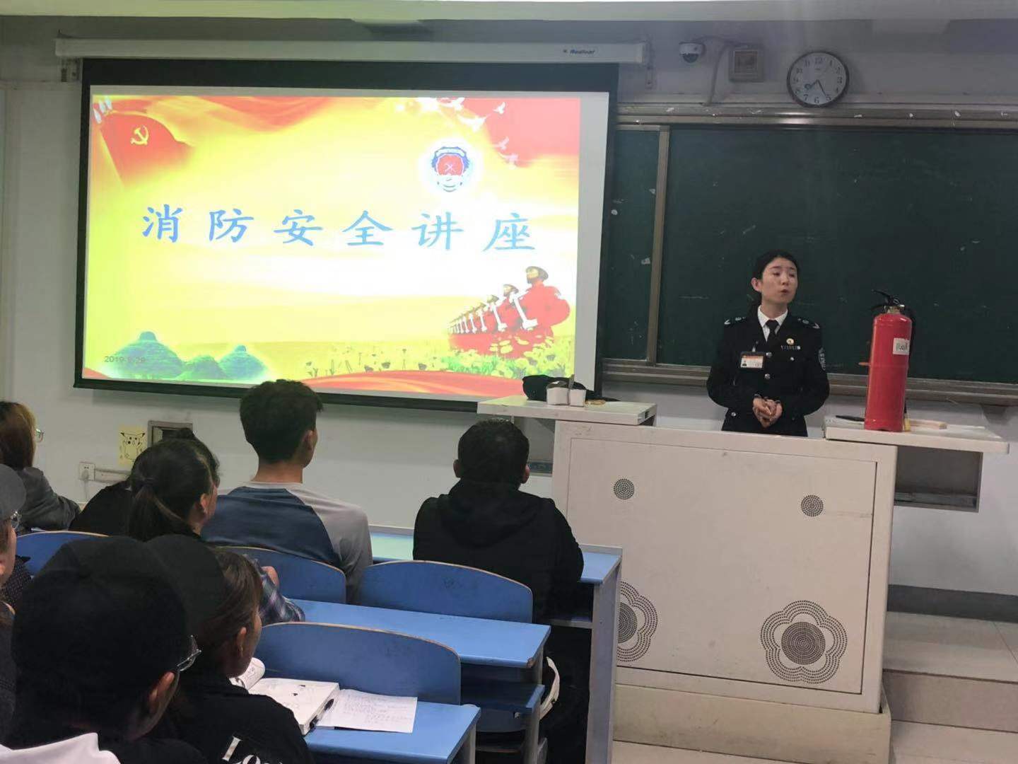 為增強學生消防安全意識,進一步普及消防安全知識與技能,構建和諧校園,9月29日晚,公共管理學院、馬克思主義學院通過保衛(wèi)處邀請內蒙古消防協(xié)會,在都林樓406教室開展了消防安全講座。公共管理學院、馬克思主義學院2019級全體新生及各班消防安全聯(lián)絡員聆聽講座。張雪教員借助PPT課件演示,提問互動等形式,通過觸目驚心的圖片、視頻,一個個真實而又發(fā)人深省的案例,就學生公寓如何逃生避險、如何報火警、火災的預防和應急處理、消防器材的正確使用等方面進行了深入淺出地講解。