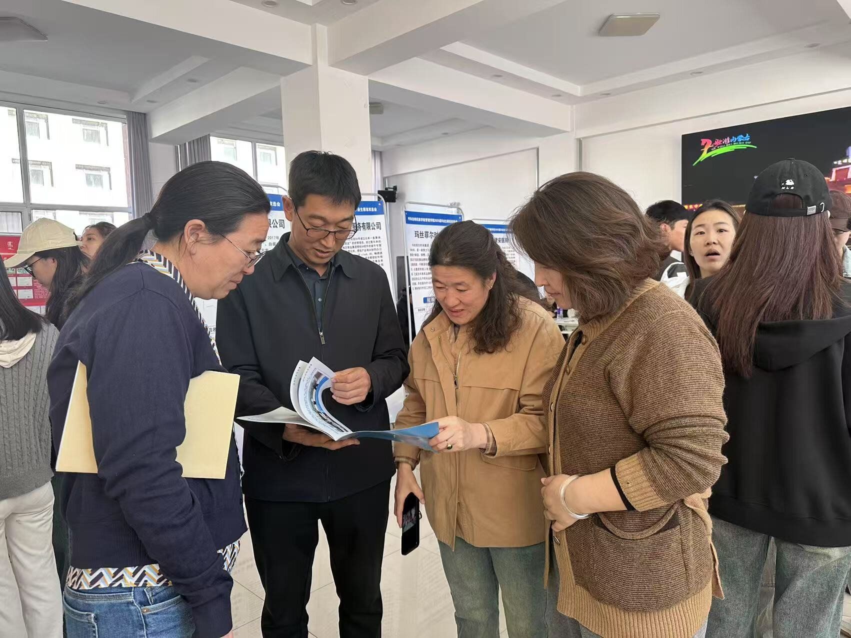在雙選會現(xiàn)場,畢業(yè)生們積極與用人單位溝通交流,同時學(xué)院老師也為學(xué)生們答疑解惑。