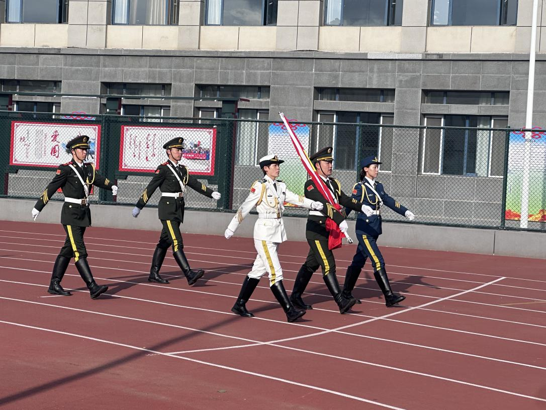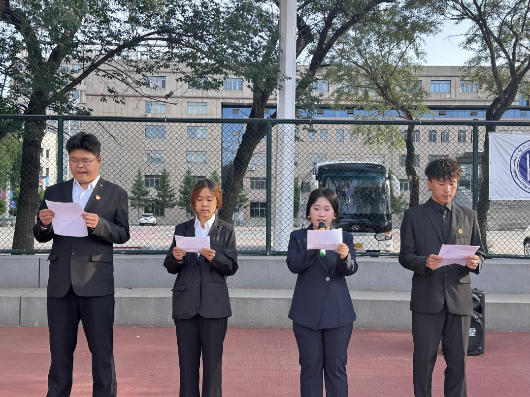 晨光熹微中,升旗儀式正式開始。國旗護衛隊步伐整齊、護衛著五星紅旗莊嚴入場。隨著激昂的《義勇軍進行曲》奏響,鮮艷的五星紅旗冉冉升起,全體師生莊嚴肅立,高唱國歌,行注目禮,愛國之情在心中澎湃涌動。在國旗下演講環節中,周易、高露洋、烏日嘎西拉圖、于增焱四位同學圍繞“弘揚蒙古馬精神 共述愛國情懷”主題,生動講述了蒙古馬吃苦耐勞、一往無前的精神內涵,結合自身學習與生活經歷,號召大家將蒙古馬精神融入日常,用實際行動踐行愛國之志。