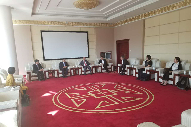 9月28日上午,一帶一路沿線國(guó)家4所高校校長(zhǎng)以及代表到我校交流訪問并舉行了宣講會(huì)。格日樂圖院長(zhǎng)代表學(xué)校熱情接見了馬來西亞成功禮待大學(xué)黃志強(qiáng)校長(zhǎng)以及代表原雪玉、英國(guó)赫瑞瓦特大學(xué)代表曹佳婧、匈牙利多瑙新城大學(xué)代表朱婧勍、泰國(guó)清邁大學(xué)龍姆?吉拉努功校長(zhǎng)以及孔子學(xué)院院長(zhǎng)馬如寶、教育部留學(xué)服務(wù)中心孫毓鵬等一行7人,并就我校的發(fā)展歷史及現(xiàn)狀和國(guó)際交流情況作了詳細(xì)介紹。
