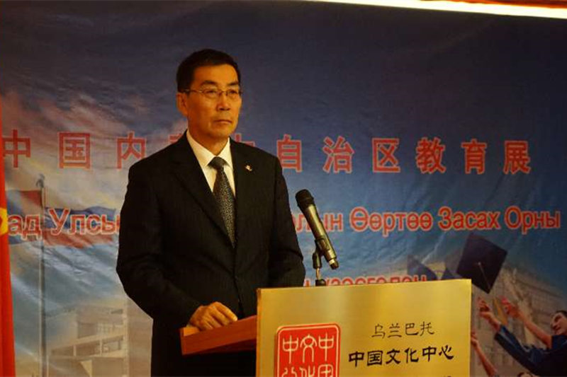 會上,內蒙古自治區教育廳副廳長張亞民致辭。他強調,教育合作是功在當代、利在千秋的浩大工程,此次在蒙古國舉辦中國內蒙古教育展,是推動內蒙古自治區與蒙古國教育交流合作的一次重要嘗試,目的就是讓蒙古國民眾更多了解內蒙古自治區高等教育發展情況,同時也搭建起一個平臺,讓兩國高校有機會建立直接的交流合作,也讓蒙古國學生赴華留學有更多的選擇。中華人民共和國駐蒙古國大使館文化參贊李薇以及蒙古國教文科體部國際合作與交流司司長額?恩和阿木古楞致辭,預祝本次教育展取得圓滿成功。
