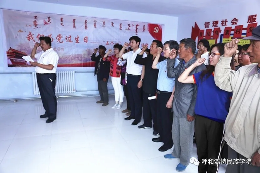 學校烏蘭牧騎臨時黨支部與昔尼烏素村黨支部重溫入黨誓詞