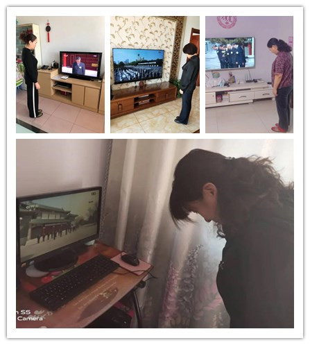 我校黨委高度重視,廣大師生積極響應(yīng)。早上7:00,在學(xué)校操場(chǎng),我校舉行了下半旗致哀活動(dòng),在現(xiàn)場(chǎng)的老師們靜默頷首致哀,向新冠肺炎疫情犧牲烈士和逝世同胞的表達(dá)深切哀悼。上午10:00,全體師生在家中通過(guò)觀看直播,肅立默哀,祭奠“抗疫”英烈,寄托對(duì)逝者哀思。