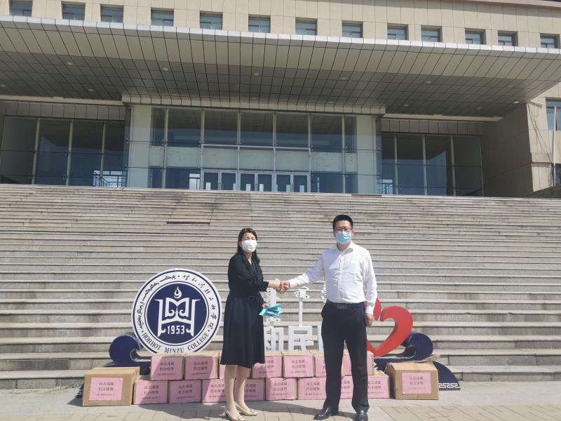 5月19日上午,我校畢業(yè)生就業(yè)實訓合作企業(yè),內蒙古蒙教科技有限公司副總經理韓繼星一行到學校捐贈防疫物資。捐贈一次性防護口罩1000個,消毒液30箱(300瓶)。副校長納麗娜代表學校接受物資捐助。