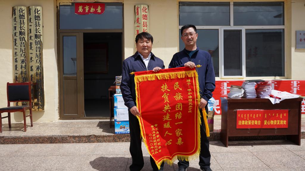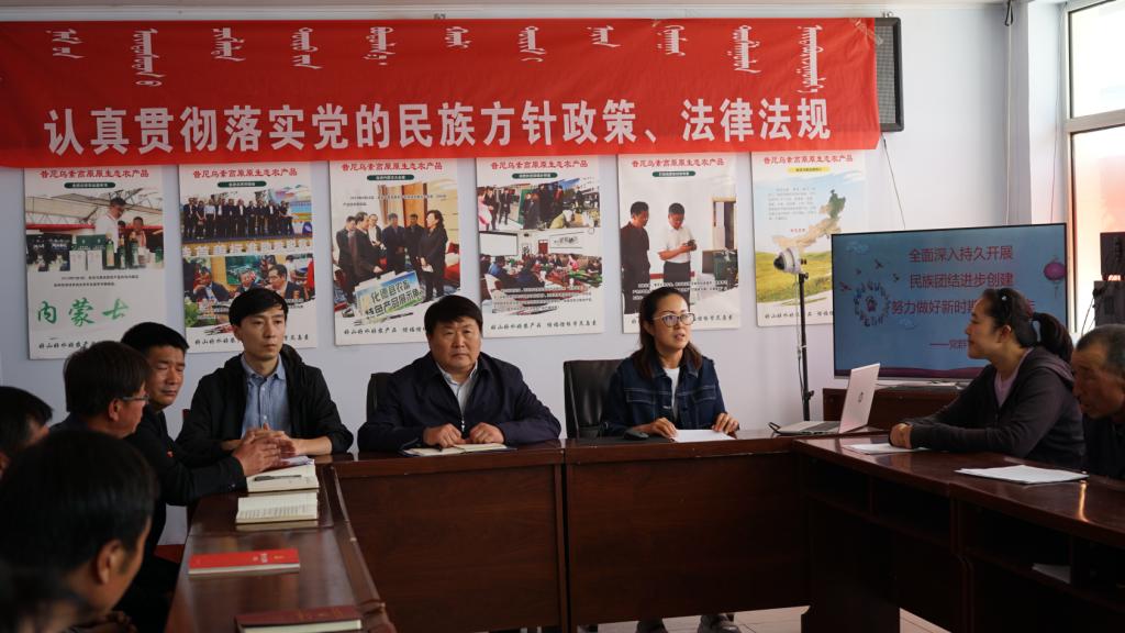為切實做好維護民族團結的思想引領,促進各民族間交往、交流、交融,不斷鑄牢中華民族共同體意識,不斷開創校內外各民族共同團結奮斗、共同繁榮發展的局面,2020年5月28日,正值“民族法制宣傳周”,在呼和浩特民族學院黨委委員、統戰部部長包君的帶領下,統戰部、法學院、計算機學院一行10人深入定點幫扶的化德縣昔尼烏素村開展了“民族法制宣傳周”進基層活動。本次活動得到化德縣縣委、縣政府的高度重視,化德縣縣委副書記、政法委書記白俊偉、長順鎮鎮長武治宇、化德縣民族局局長寶國宏、化德縣政府辦公室副主任梁燕昆、長順鎮副鎮長楊春光、化德縣民族局副局長和希格陪同全程開展活動,化德縣電視臺全程報道。