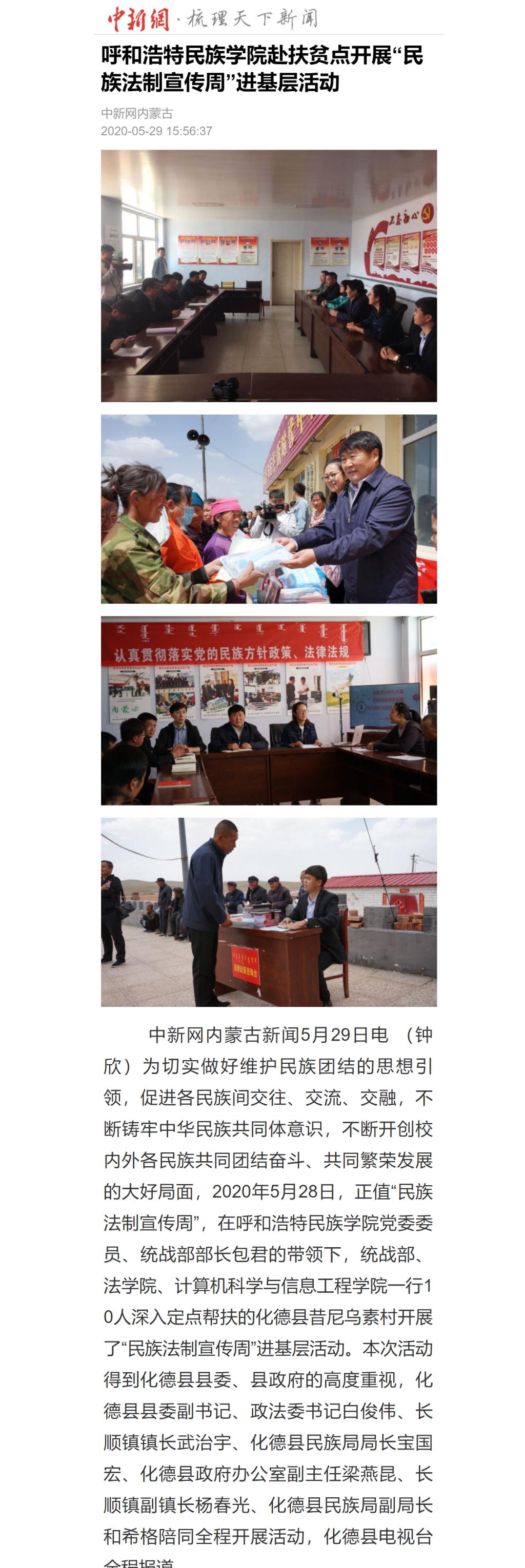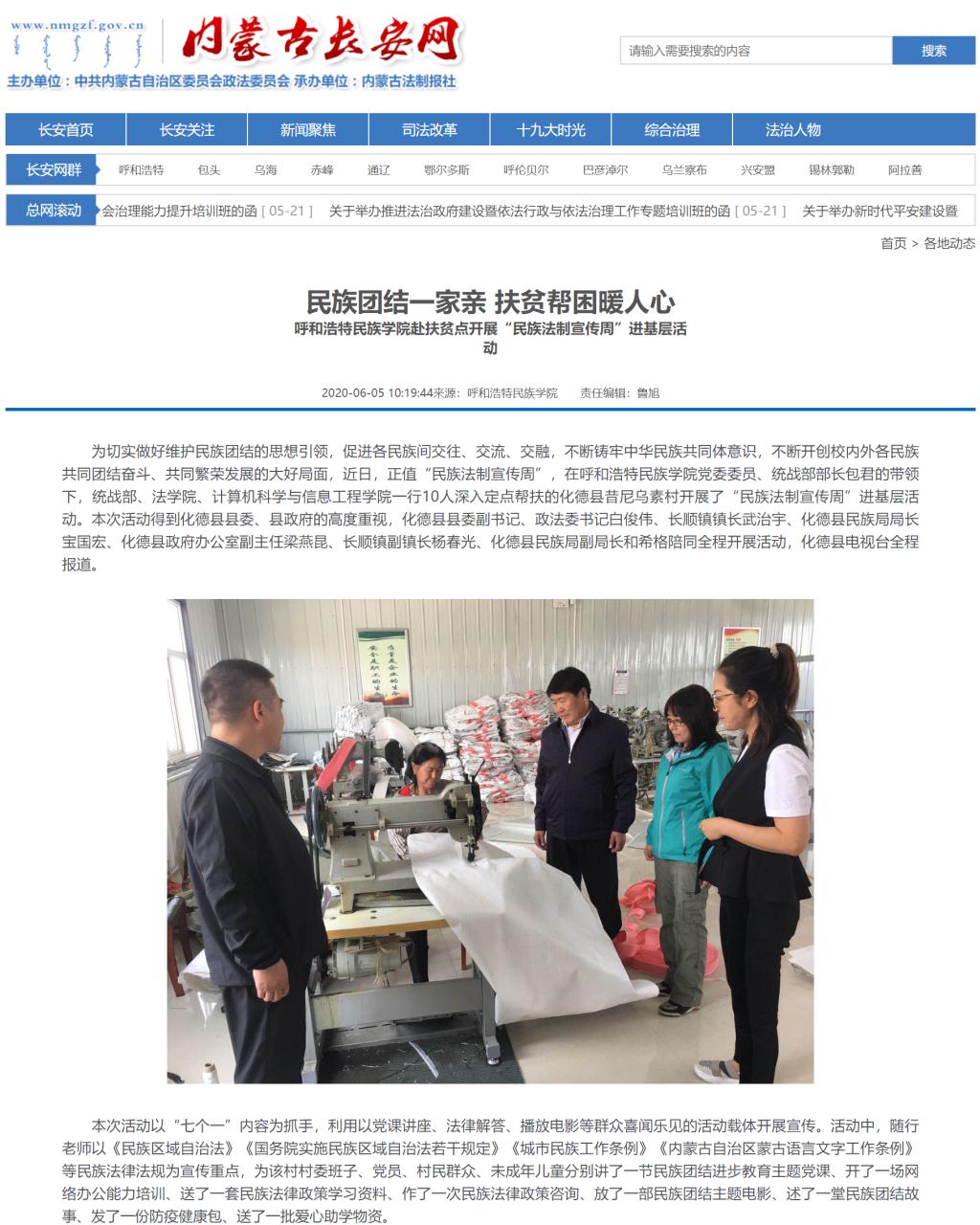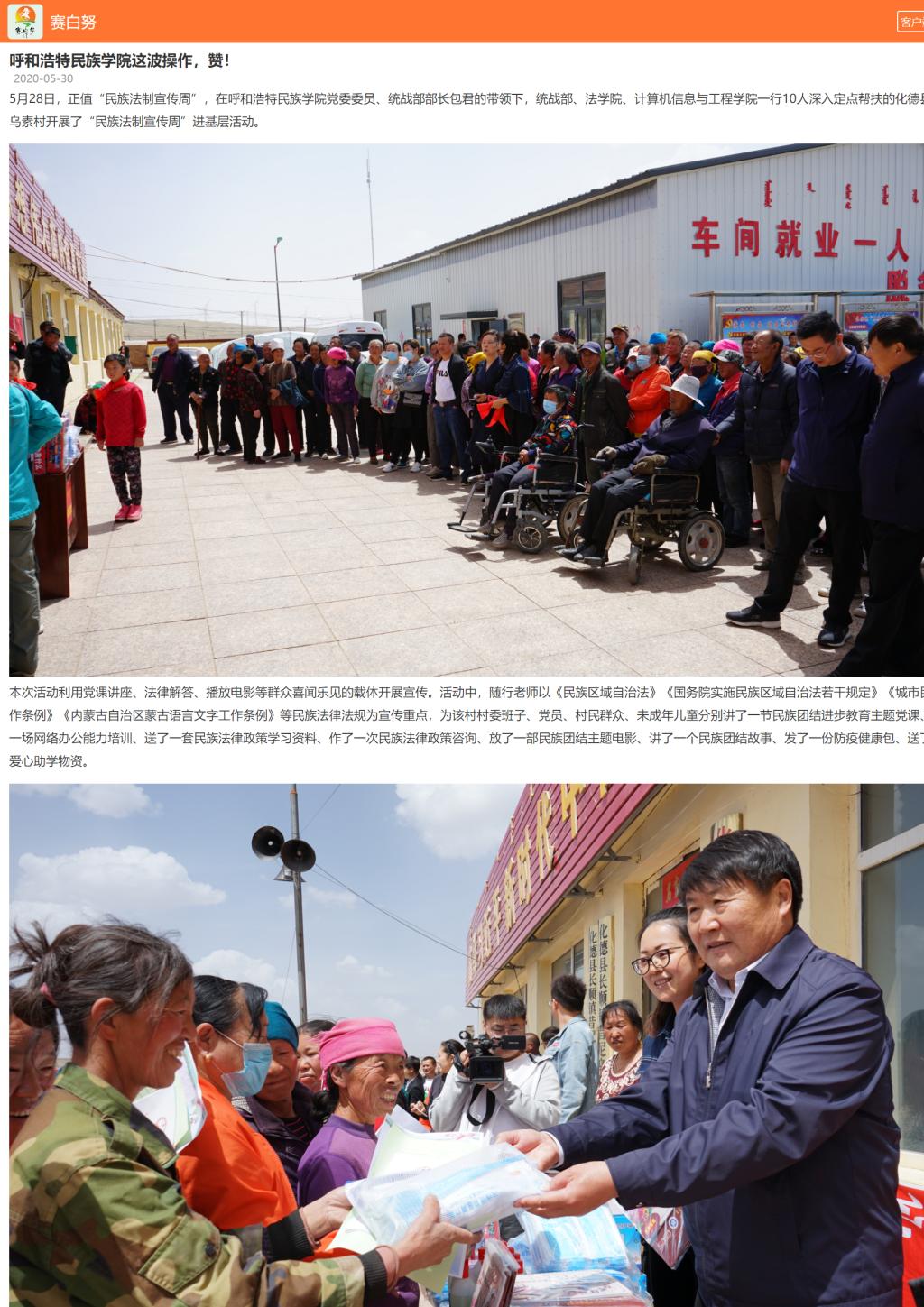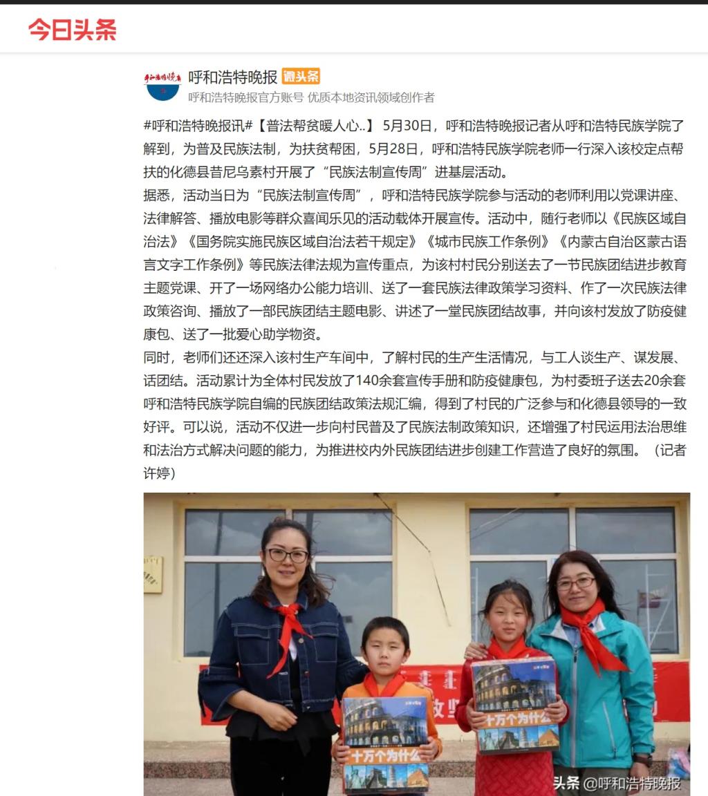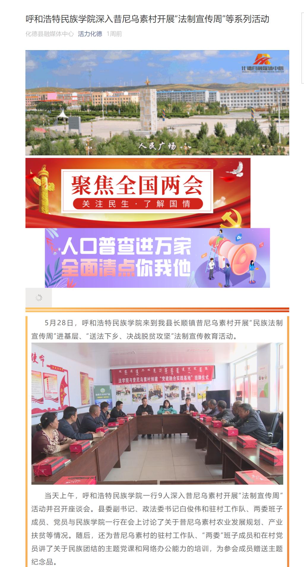 自“民族法制宣傳周”活動開展以來,呼和浩特民族學(xué)院黨委統(tǒng)戰(zhàn)部帶領(lǐng)相關(guān)二級學(xué)院深入化德縣昔尼烏素村開展的“民族法制宣傳周”進(jìn)基層活動因內(nèi)容豐富、效果良好,引發(fā)了人民網(wǎng)、中國新聞網(wǎng)、內(nèi)蒙古日報、呼和浩特晚報、內(nèi)蒙古廣播電臺、內(nèi)蒙古電視臺、正北方網(wǎng)(北方新報主辦)、賽白努App(內(nèi)蒙古日報社主辦)、長安網(wǎng)(內(nèi)蒙古法制報社承辦)、Monggol App(內(nèi)蒙古日報社主辦)、化德縣電視臺、活力化德等12家區(qū)內(nèi)外各級主流媒體的廣泛報道,覆蓋了報紙、電視臺、新媒體、客戶端、廣播電臺、網(wǎng)站等多種宣傳媒介。