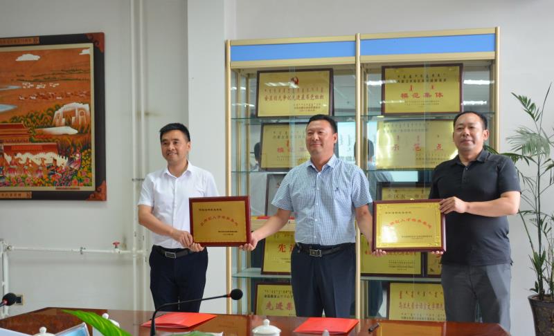 會議最后,格日樂圖校長與朱建豪副主席代表雙方簽署了校地人才智力項目戰略合作協議書。朱建豪副主席向學校授予“應用型人才培養基地”牌匾。