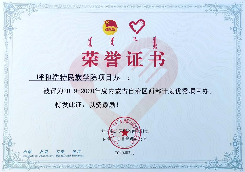 我校獲評2019—2020年度內蒙古自治區西部計劃優秀項目辦