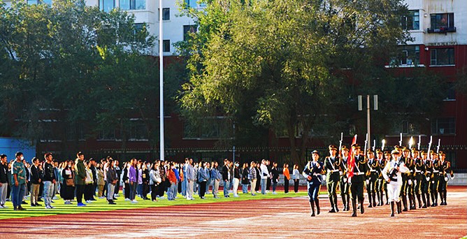 9月7日清晨7時,學校在操場舉行了莊嚴的“開學第一課”升國旗儀式。學校黨委書記孫國權,黨委副書記、校長格日樂圖,黨委副書記胡春梅,副校長納麗娜出席儀式,各職能部門負責人、各二級學院黨總支書記、院長、團總支書記、輔導員及學生代表共計480余人參加了升國旗儀式。