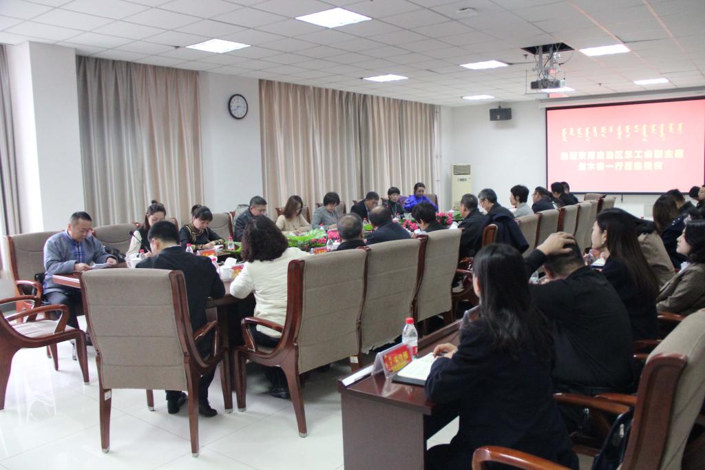 會上,學校黨委副書記胡春梅致辭,她代表學校黨委和行政對自治區總工會副主席傲木格一行的到來表示熱烈的歡迎,自治區總工會對我校事業發展和工會工作一如既往的關心、支持和厚愛表示衷心的感謝!胡書記從我校發展歷程、學校師資情況、在校學生規模、教育科研取得的成果以及 “鑄牢中華民族共同體意識”及民族團結進步活動開展情況和取得的成績進行了詳細的介紹,她希望自治區總工會在很多領域和我校能進行廣泛的合作和交流,并一如既往的支持學校的各項工作。