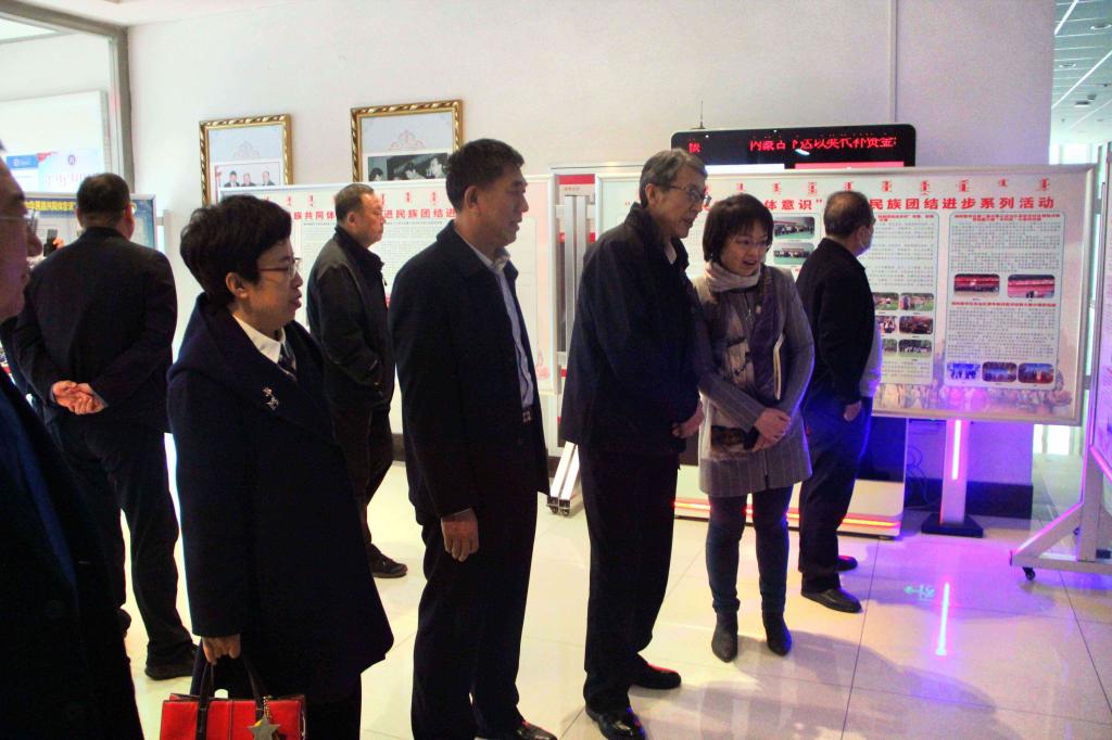 傲木格副主席一行在胡春梅副書記的陪同下一起觀看了“鑄牢中華民族共同體意識”圖片展版,美術學院民族團結進步成果展,到學校體育學院實地體驗了民族體育傳統項目布魯、射箭活動。