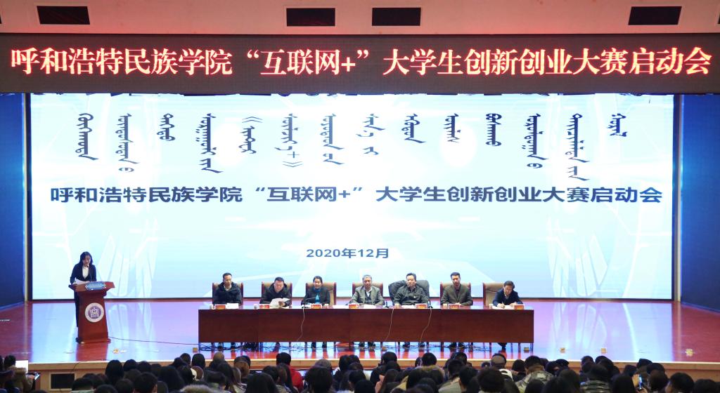 12月17日下午,我校在圖書館二樓報告廳隆重召開了呼和浩特民族學院“互聯(lián)網(wǎng)+”大學生創(chuàng)新創(chuàng)業(yè)大賽啟動會。學校黨委副書記、校長格日樂圖,副校長賀希格吉雅,副校長納麗娜出席大會。企業(yè)代表內(nèi)蒙古心物教育總經(jīng)理楊原及相關職能部門負責人、各二級學院領導班子成員、大學生創(chuàng)新創(chuàng)業(yè)訓練項目學生團隊、各學院學生代表等600余人參加了會議。啟動會由學校副校長賀希格吉雅主持。