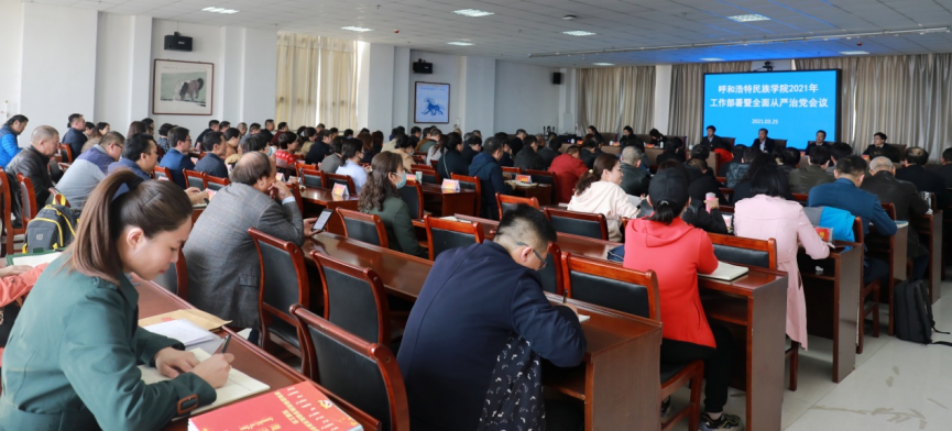 學校黨委副書記、校長格日樂圖代表學校黨委、行政全面回顧了2020年學校各項工作,并從加強黨的全面領(lǐng)導、加強黨的政治建設(shè)、強化理論武裝、切實鑄牢中華民族共同體意識、認真開展黨史學習教育、提升思想政治工作質(zhì)量、加強學校文化建設(shè)、確保意識形態(tài)安全、大抓基層黨建、提升干部隊伍能力素質(zhì)、不斷加強黨風廉政建設(shè)、加強和改進統(tǒng)戰(zhàn)工作、加強群團與離退休工作等方面部署了2021年黨建工作,從編制“十四五”規(guī)劃、提升學科建設(shè)水平、提高教育教學質(zhì)量、推進校內(nèi)雙語教學改革、增強科研創(chuàng)新能力、優(yōu)化師資隊伍結(jié)構(gòu)、提升教師隊伍整體素質(zhì)、加強學生管理工作、擴大畢業(yè)生就業(yè)、深化交流合作、提升綜合服務(wù)保障水平等方面部署了2021年中心工作。格校長還就如何認識和推進申碩工作,如何加強一流專業(yè)建設(shè)、“四新”專業(yè)建設(shè),如何推進轉(zhuǎn)型發(fā)展等工作進行了重點強調(diào)。