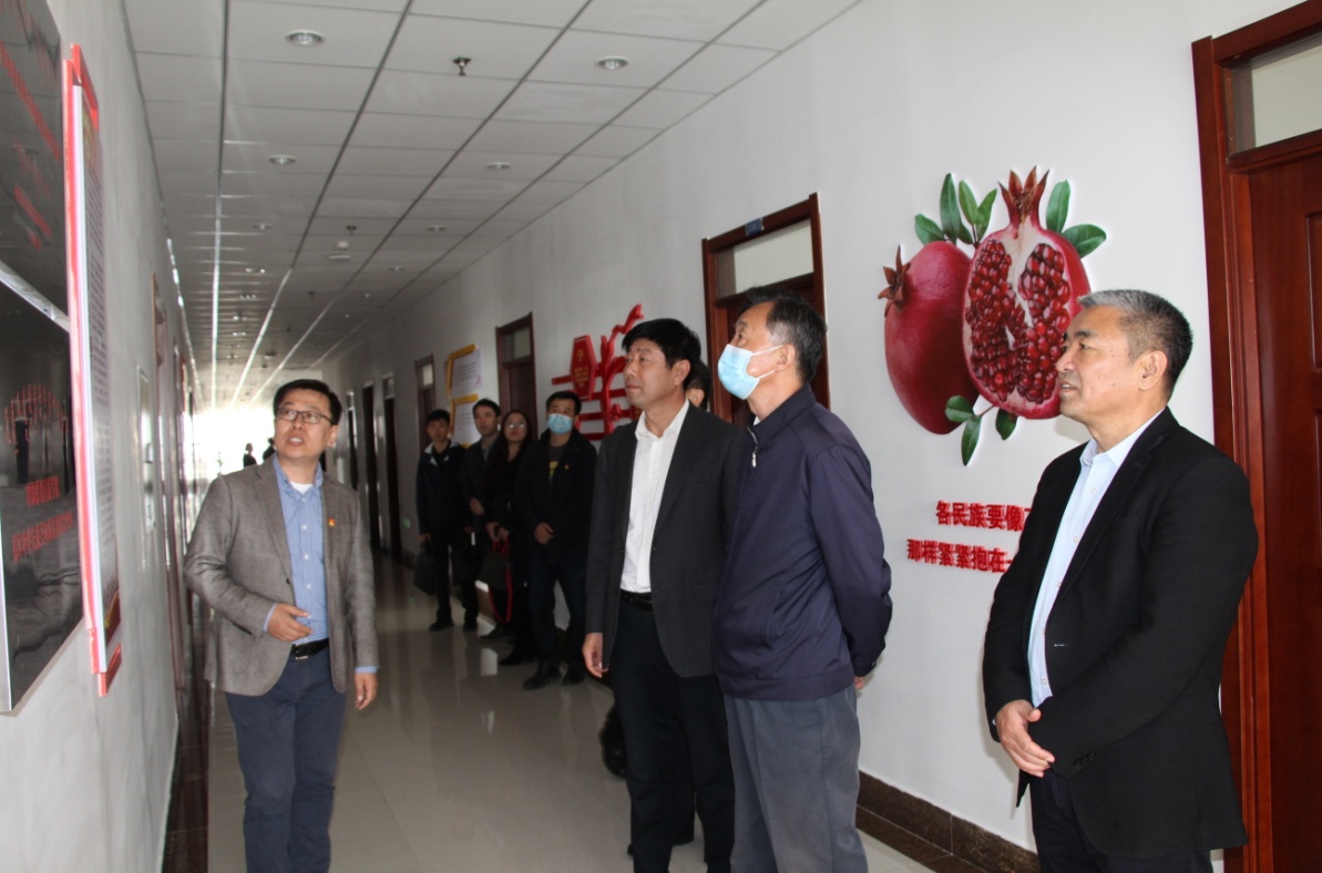 調研期間,張力理事長一行在黨委書記孫國權,黨委副書記、校長格日樂圖,黨委委員、副校長韓偉新的陪同下,參觀了校史館和自治區民委鑄牢中華民族共同體意識研究基地(中心),觀看了我校民族團結進步工作展板。