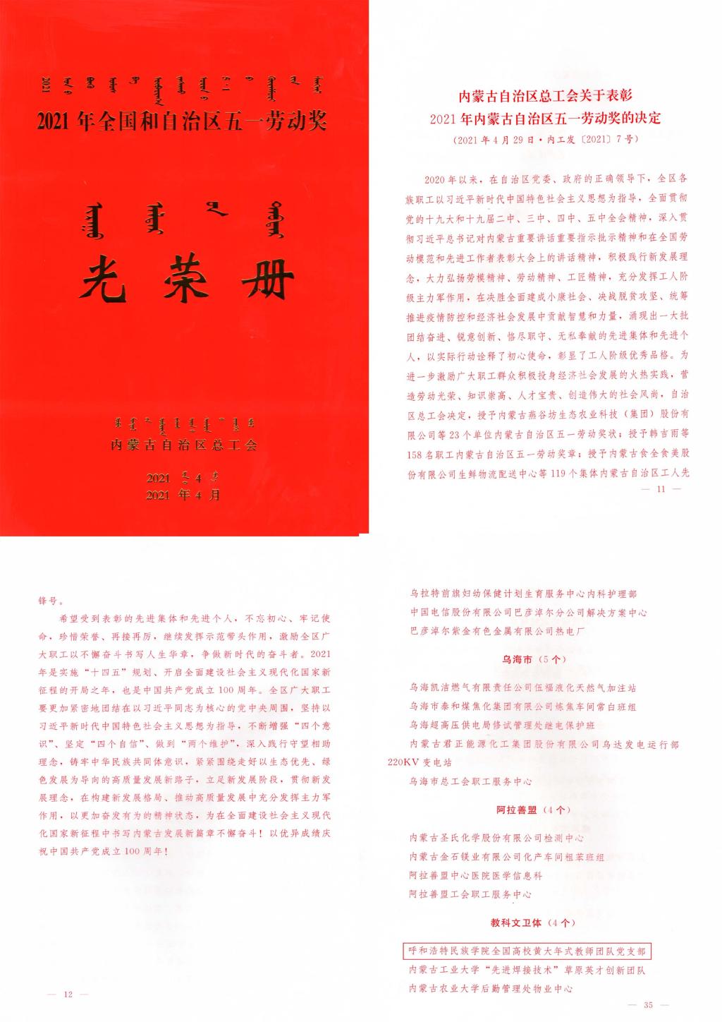 近日,內蒙古自治區總工會評選表彰了一批為全區發展做出積極貢獻的勞動者、勞動集體,并授予五一勞動獎狀、獎章和工人先鋒號、五一巾幗標兵崗、五一巾幗標兵。我校數學與大數據學院黃大年式教師團隊黨支部榮獲內蒙古自治區工人先鋒號;醫務室榮獲內蒙古自治區“五一巾幗標兵崗”榮譽稱號。