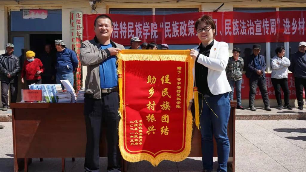 本次活動的主題是“呵護模范自治區榮譽 鑄牢中華民族共同體意識”。今年的“七個一”活動較之去年有所創新,即聯合開展一場民族政策法治宣傳教育、同升一次國旗、同過一次黨史學習教育主題黨日活動、同唱一首紅色歌曲、辦一件黨史學習教育實事、慰問一批困難群眾、送一批愛心物資。本次活動共為昔尼烏素村送去價值61751元的愛心物資,展出21塊鑄牢中華民族共同體意識教育展板,發放500本民族政策法治學習讀本,得到縣、鎮、村三級領導班子的大力配合支持,中共化德縣委員會、化德縣人民政府向學校贈送了“促民族團結、助鄉村振興”的錦旗。