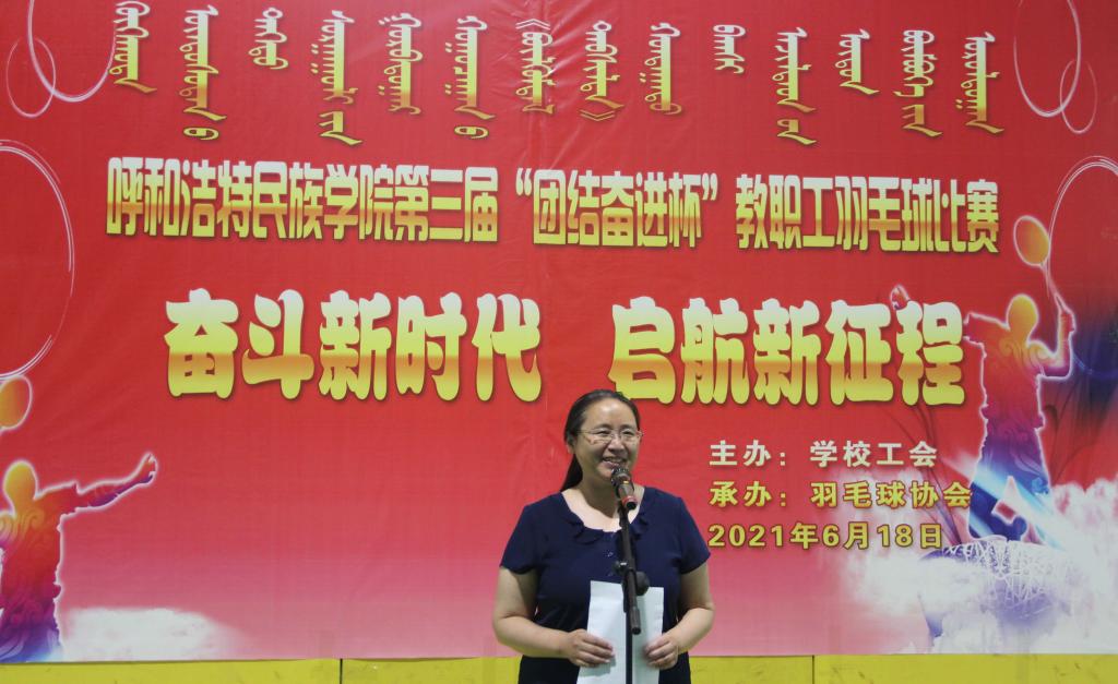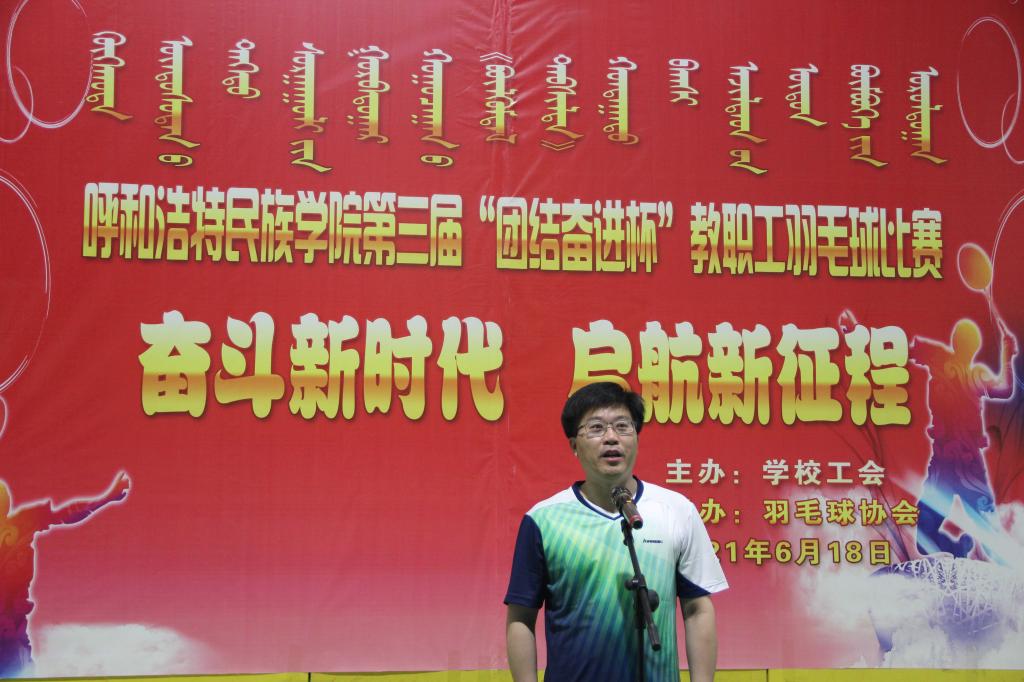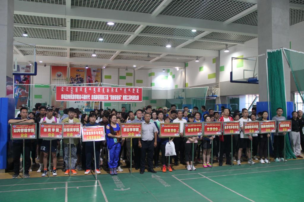 為慶祝建黨100周年,豐富教職工業(yè)余文化生活,培養(yǎng)教職工團(tuán)結(jié)、協(xié)作的團(tuán)隊(duì)意識(shí),增強(qiáng)教職工之間的溝通交流,6月18日下午,由學(xué)校工會(huì)主辦,羽毛球協(xié)會(huì)承辦的呼和浩特民族學(xué)院“奮斗新時(shí)代 出發(fā)新征程”第三屆“團(tuán)結(jié)奮進(jìn)杯”教職工羽毛球比賽,在體育館一樓舉行。學(xué)校黨委副書記、校長(zhǎng)格日樂(lè)圖,副書記胡春梅,黨委委員、副校長(zhǎng)韓偉新,黨委委員、紀(jì)委書記王冬梅,黨委委員、副校長(zhǎng)高喜天,黨委委員、黨政辦主任朝格吉樂(lè)圖及學(xué)校工會(huì)全體人員、羽毛球協(xié)會(huì)工作人員、各分工會(huì)主席、委員、全體運(yùn)動(dòng)員、裁判員160余人參加了開(kāi)幕式。開(kāi)幕式由學(xué)校工會(huì)主席邢文岐主持。