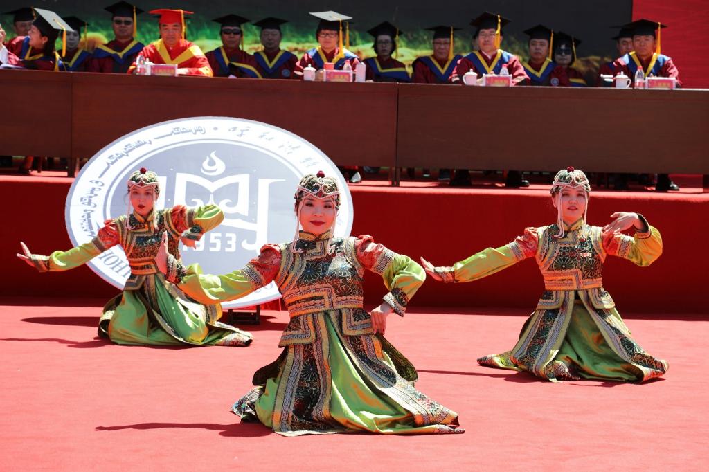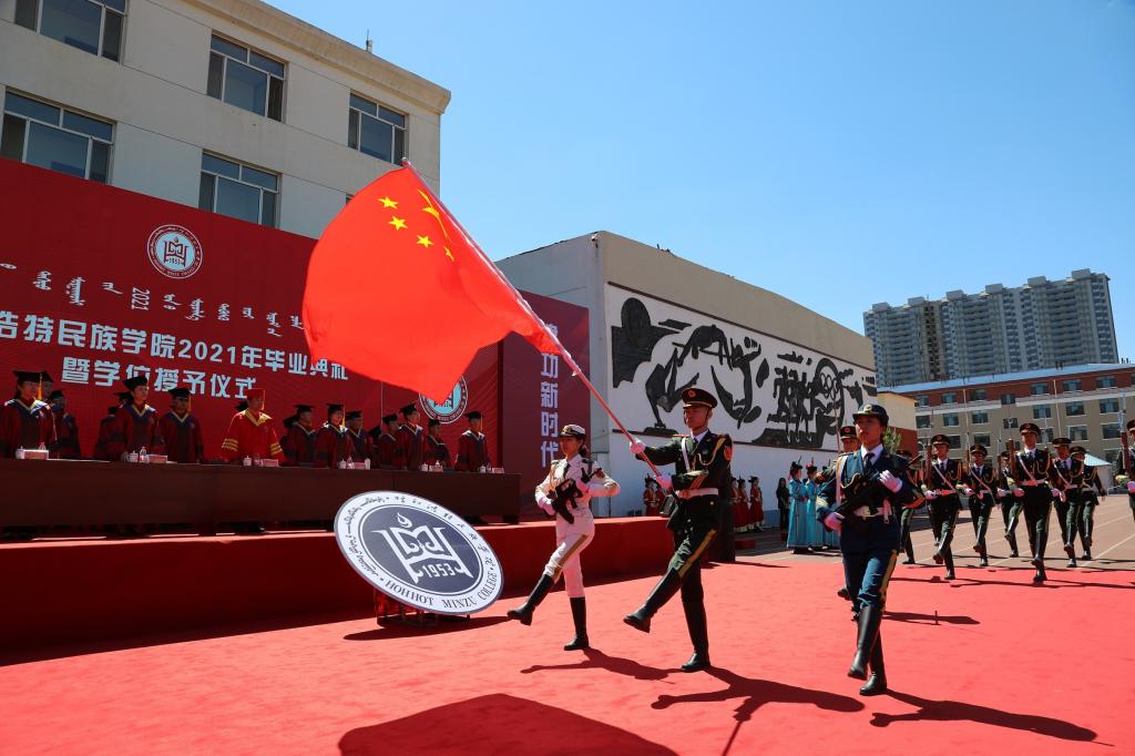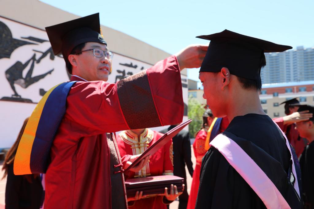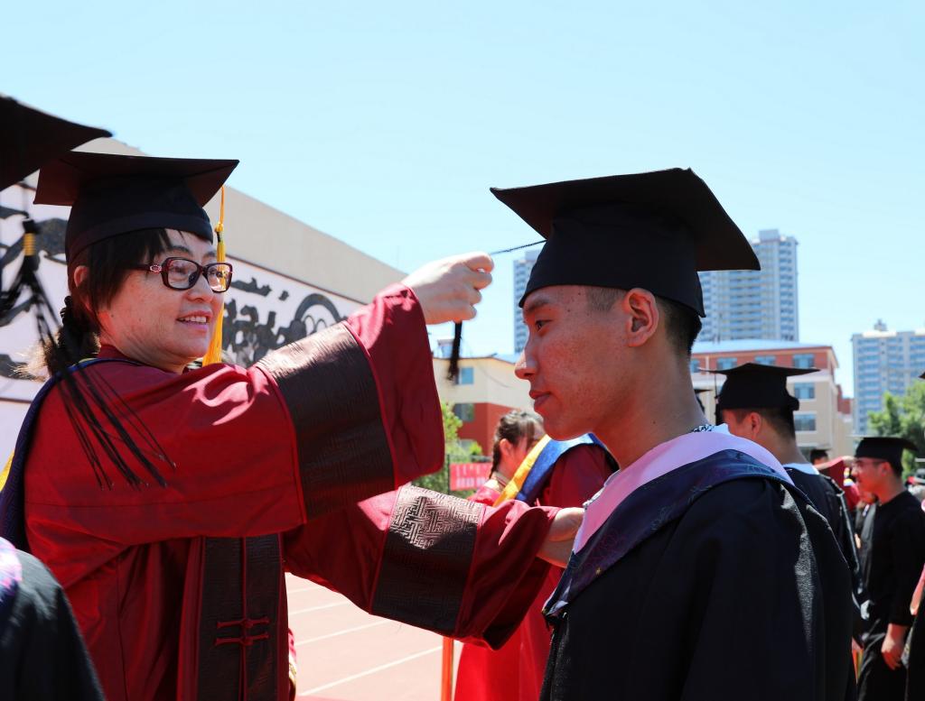 6月18日上午,我校2021屆學生畢業典禮暨學位授予儀式在南院操場隆重舉行。學校黨委副書記、校長格日樂圖,黨委副書記胡春梅,副校長納麗娜,黨委委員、副校長韓偉新,黨委委員、紀委書記、監察專員王冬梅,黨委委員、副校長高喜天出席儀式。學校學位評定委員會成員、各職能部門負責人、二級學院黨總支書記、團總支書記、學工辦主任以及畢業班班主任、輔導員、教師代表、畢業生代表等1100多人參加了儀式。學校副校長納麗娜主持儀式。