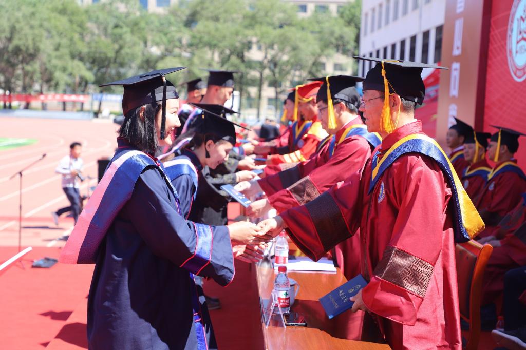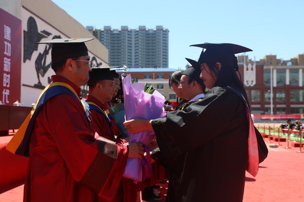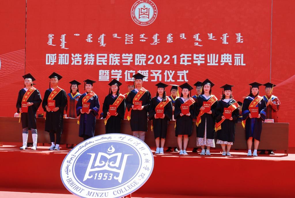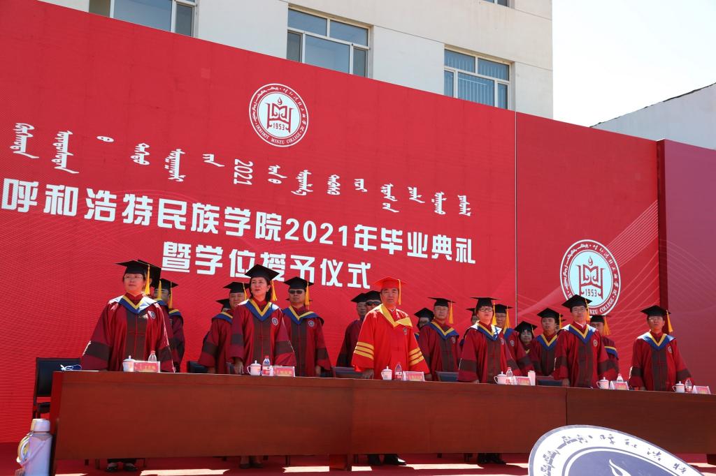 畢業典禮上,教務處副處長哈斯額爾德尼宣讀了學校本專科生畢業及學士學位授予情況。韓偉新副校長宣讀了《關于表彰2021屆優秀畢業生的決定》。校領導為優秀畢業生頒獎。
