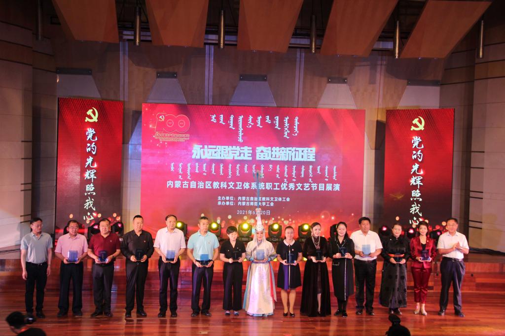6月20日晚,“永遠(yuǎn)跟黨走 奮進(jìn)新征程”慶祝建黨100周年全區(qū)教科文衛(wèi)體系統(tǒng)職工優(yōu)秀文藝節(jié)目展演活動(dòng)在內(nèi)蒙古師范大學(xué)順利舉行,自治區(qū)、總工會(huì)和主要高校領(lǐng)導(dǎo)參加了活動(dòng)。我校黨委委員、副校長(zhǎng)高喜天和校工會(huì)全體人員及我校參演代表隊(duì)參加了活動(dòng)。