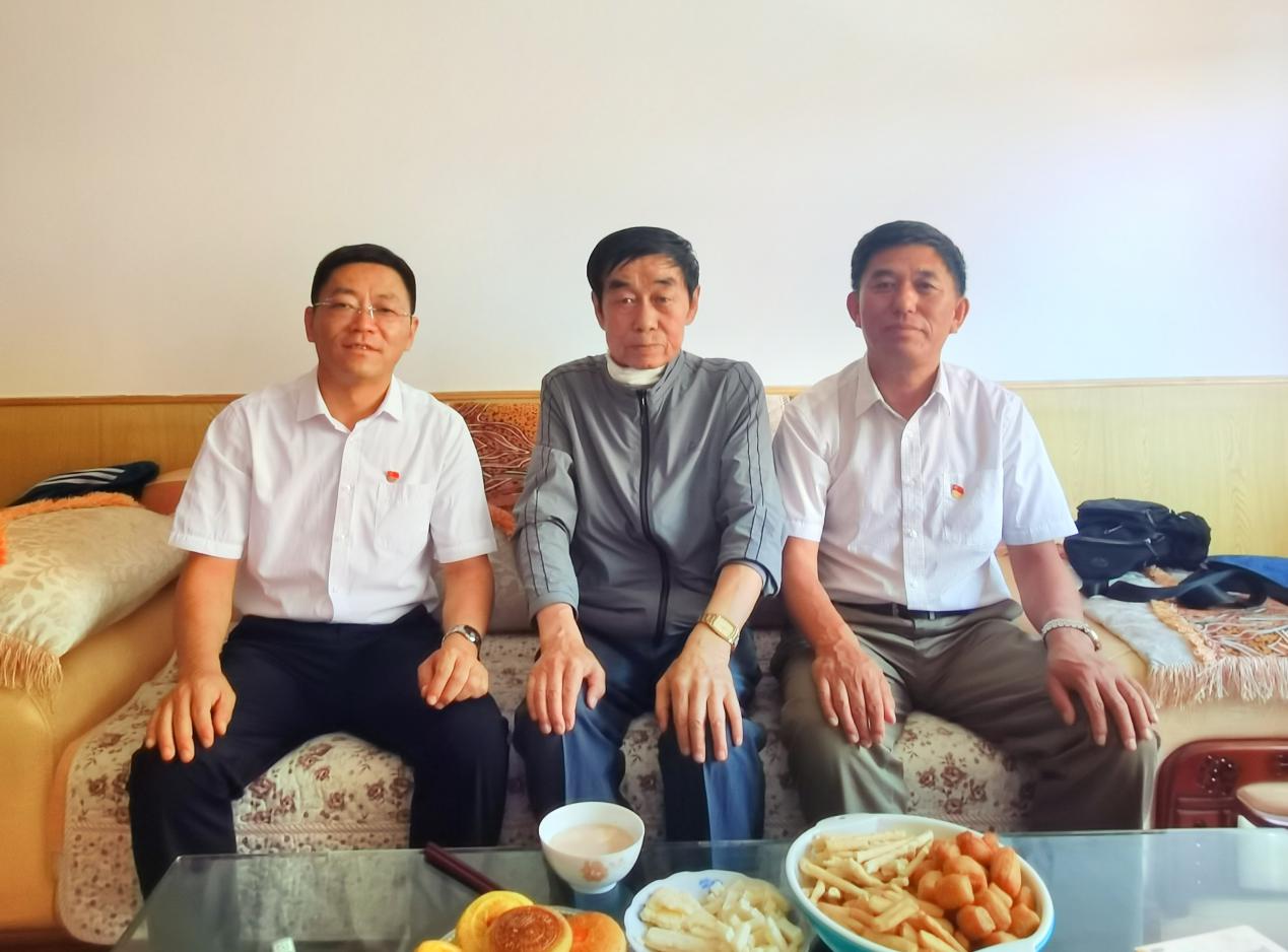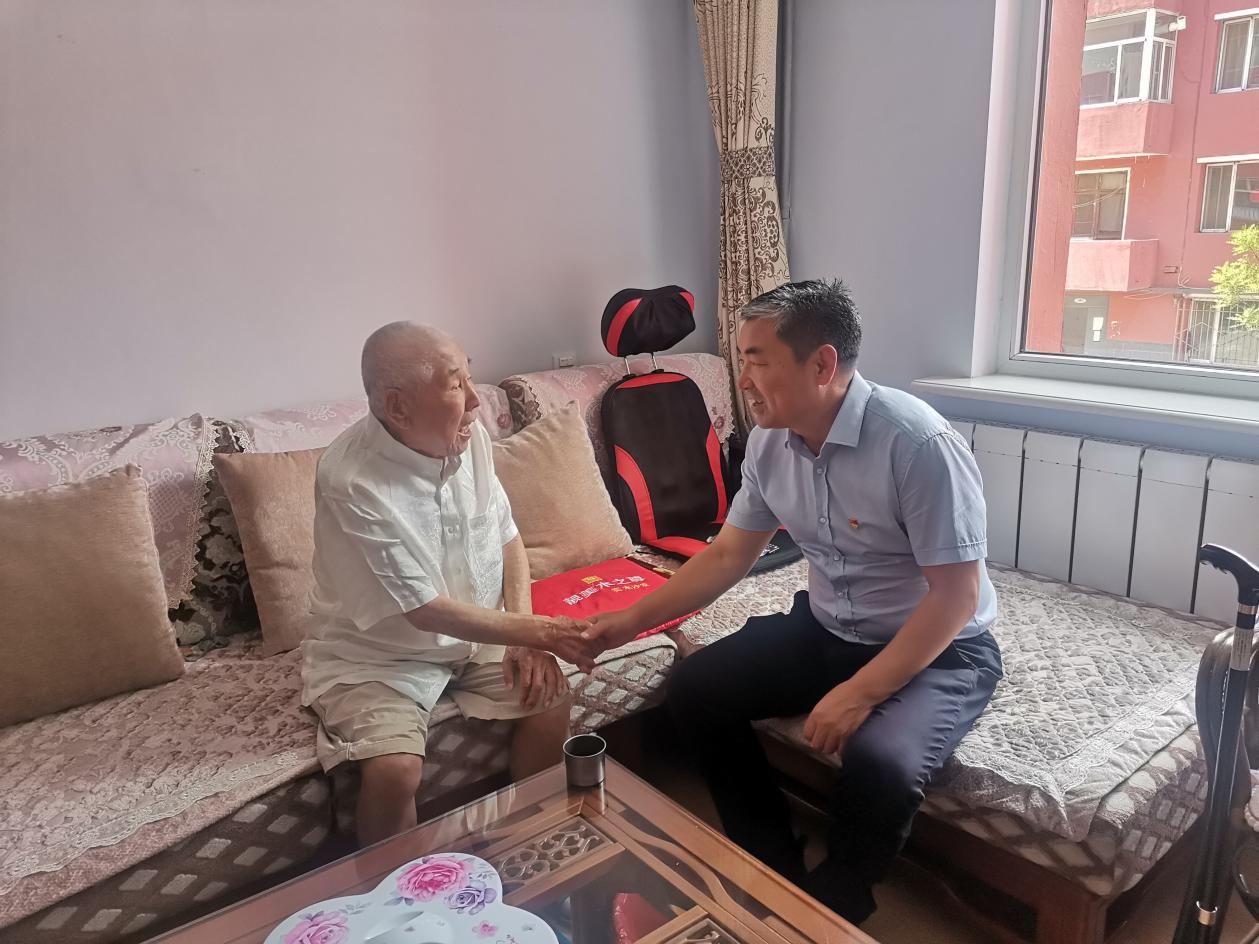格日樂圖校長看望慰問了86歲高齡的特木爾老師。格日樂圖校長與特木爾老師坐在一起拉家常,詳細了解生活和健康狀況,感謝他為學校事業作出的積極貢獻,祝福特老師健康長壽、生活幸福。格日樂圖校長還叮囑有關部門多關心關愛老黨員,讓老黨員安享晚年。