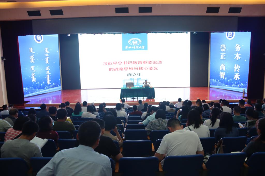 7月5日下午,在圖書館二樓報告廳,我校邀請東北師范大學馬克思主義學部部長龐立生教授作“習近平總書記教育重要論述的戰略思維與核心要義”專題講座。我校黨委委員、副校長韓偉新主持講座,各二級學院、教務處、科技處、發展規劃與學科建設處、人事處、教師發展與教學評估中心專業技術人員等300余名教師參加。