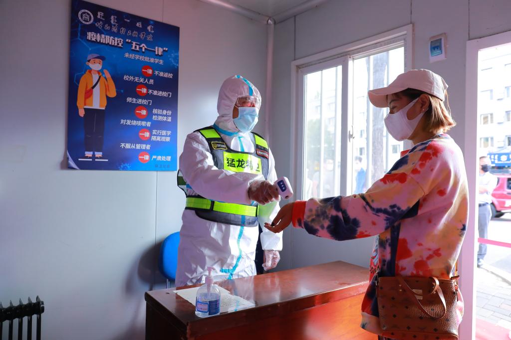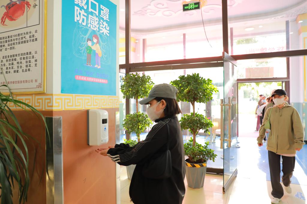 師生間隔一米,出示48小時內核酸檢測陰性證明、綠色行程碼、健康碼,經過手消、行李消殺及測量體溫合格后,方可進入校園。
