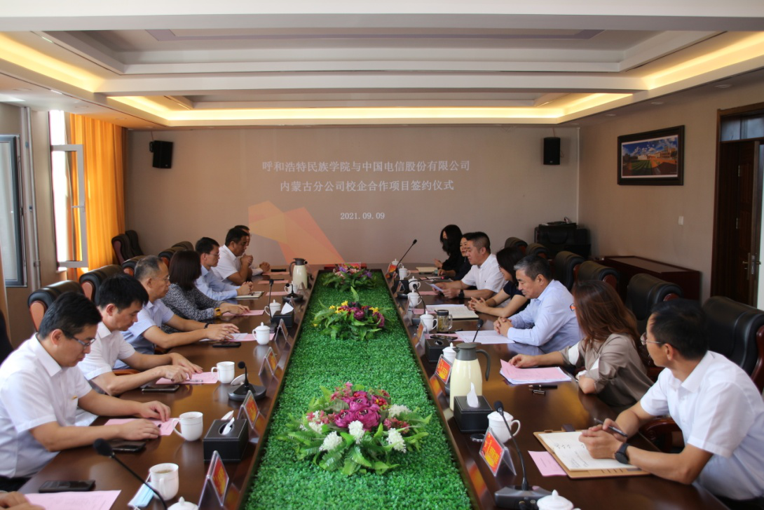 9月9日下午,我校與中國(guó)電信內(nèi)蒙古分公司簽署了戰(zhàn)略合作協(xié)議,簽約儀式在辦公樓三樓會(huì)議室舉行。中國(guó)電信內(nèi)蒙古分公司黨委書(shū)記、總經(jīng)理谷紅勛,黨委委員、副總經(jīng)理劉檳楠等中國(guó)電信內(nèi)蒙古分公司、中國(guó)電信呼和浩特市分公司的領(lǐng)導(dǎo)同志及學(xué)校黨委副書(shū)記、校長(zhǎng)格日樂(lè)圖,副校長(zhǎng)納麗娜,相關(guān)部門(mén)負(fù)責(zé)人參加了會(huì)議。會(huì)議由黨政辦公室主任朝格吉樂(lè)圖主持。